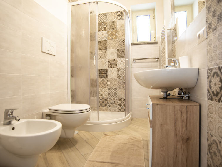 Huis 3-kamers 60 m2, op de begane grond. Licht, comfortabel en smaakvol ingericht: woon-/eetkamer met eettafel, kookhoek en Sat-TV. Uitgang naar de zitplaats in de tuin. 1 2-pers. kamer met air-conditioning en heteluchtverwarming. 1 kamer met 1 2-pers divanbed (1 x 180 cm, lengte 160 cm), air-conditioning en heteluchtverwarming. Kookhoek (afwasmachine, 4 kookpitten (vlammen), waterkoker, magnetron). Douche/bidet/WC. Groot terras 70 m2, zithoek in de tuin. Terrasmeubelen, ligstoelen. Zeer mooi panoramazicht op zee. Ter beschikking: wasmachine, strijkijzer, haardroger. Internet (Internet (WiFi), gratis). Parkeerplaats (omheind). Geschikt voor families. Rookmelders, brandblusser. IT063044C2K86WWF9X
