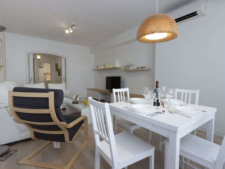 Appartement 3-kamers 80 m2 op de 3e verdieping. Smaakvol en gezellig ingericht: woon-/eetkamer met Digitale TV, Flatscreen TV en air-conditioning. 1 kamer met 1 2-pers bed (150 cm), bad/bidet/WC en air-conditioning. 1 kamer met 1 uitschuifbaar bed (2 pers. 2 x 90 cm), air-conditioning. Keuken (oven, afwasmachine, 4 keramische glas kookplaten, magnetron, diepvriezer). Bad/bidet/WC. Verwarming. Ter beschikking: wasmachine. Internet (WiFi, gratis). VT-8927 // Reg. Nr.: ESFCNT00002810200008241600000000000000000000000000003