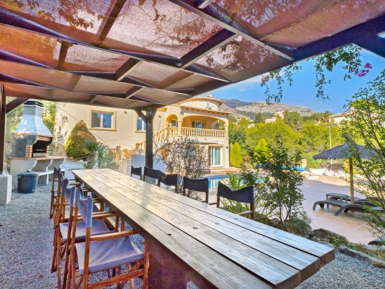 Mooi villa "Gekko", van 2 verdiepingen. 7 km van het centrum van Altea, 12 km van het centrum van Calpe, 4 km van zee, 4 km van het strand. Voor alleengebruik: terrein 1.591 m2 (omheind), tuin met bloemen en bomen, openluchtzwembad (10 x 4 m, seizoensgebonden beschikbaarheid: 01.Jan. - 31.Dec.) met trap. Buitendouche, tennisbaan, basketbal, prieel, terras, barbecue, kinderspeelplaats. Trappenweg naar het huis. Parkeerplaats bij het huis. Levensmiddelenwinkel 2 km, supermarkt 2 km, restaurant 1 km, bushalte 2 km, kiezelstrand "Playa Mascarat" 6 km. Jachthaven 6 km, jachthaven 6 km, golfterrein (12 holes) 1 km. Attracties in de buurt: Aqualandia, Mundomar, Terra Mítica, Terra Natura, Benidorm Palace (Benidorm), Les Fonts de l'Algar, Castillo de Guadalest. De eigenaar accepteert geen jeugdgroepen. De eigenaar woont op hetzelfde terrein.
