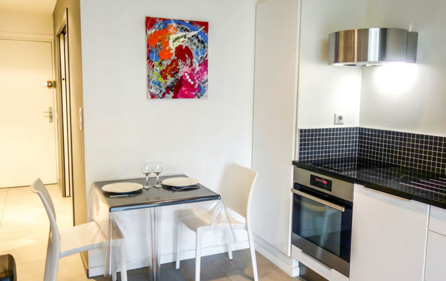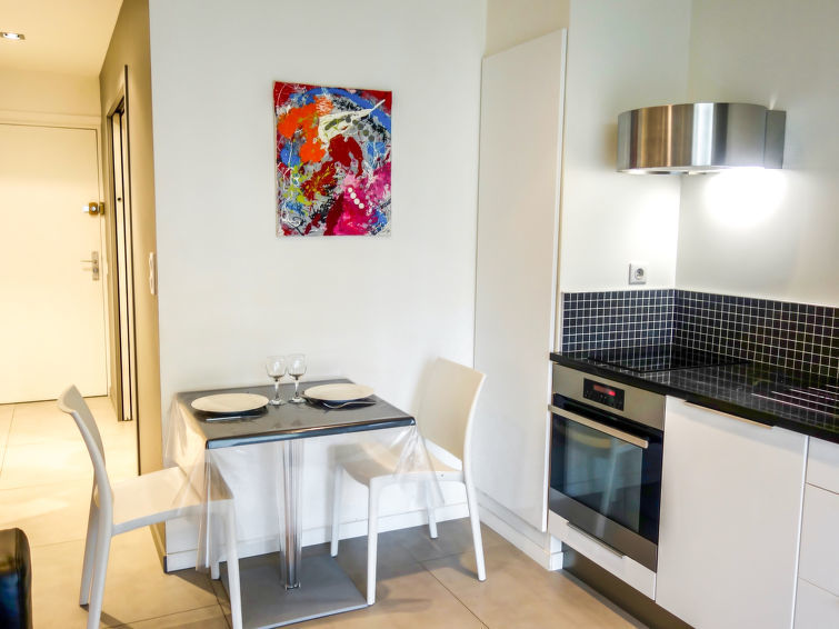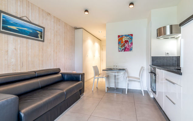 Arcachon: Residentie "Les Pieds dans l'eau". 300 m van zee, 300 m van het strand. In het complex: lift, bergruimte voor fietsen. Parkeerplaats. Levensmiddelenwinkel 350 m, restaurant 60 m, bar 230 m, bakkerij 250 m, café 450 m, centrum te voet bereikbaar in 15 minuten, station "Arcachon" 1.9 km, zandstrand "Arcachon" 300 m, park "Mauresque" 2 km. Jachthaven 50 m, golfterrein (18 holes) 3.5 km, surfschool 5.1 km, fietspad 400 m. Attracties in de buurt: La Dune du Pyla 10.5 km, Arcajet marine 600 m, La navette pour le cap ferret 1.4 km, Aqualand 8.3 km, Réserve Ornithologique du Teich 13.9 km, Marché Municipal 1.8 km. Bekende meren kunnen gemakkelijk worden bereikt: Lac de la Magdeleine 9.1 km, Lac de Cazaux 18.4 km, Lac de Sanguinet 25.9 km. De sleuteloverdracht vindt plaats bij het agentschap Arcachon in Interhome, 2 km.