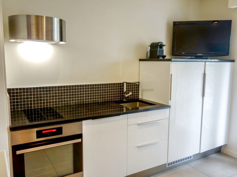 Studio 1-kamer 23 m2, op de begane grond. Het objekt is geschikt voor 2 volwassenen + 1 kinderen. Doelmatig en mooi ingericht: woon-/eetkamer met 1 2-pers divanbed (1 x 140 cm, lengte 190 cm), TV (Flatscreen TV). Slaapnis met 1 x 1 stapelbedden (80 cm, lengte 190 cm). Open keuken (oven, 2 inductiekookplaten, broodrooster, waterkoker, diepvriezer, elektrische koffiemachine, pads voor de koffiemachine (Nespresso) extra). Douche/WC. Elektrische verwarming. Ter beschikking: strijkijzer, haardroger. Internet (Internet (WiFi), extra). Parkeerplaats nr. 6. Let op: woning aan de parkeer zijde. Niet rokers woning. Rookmelders.