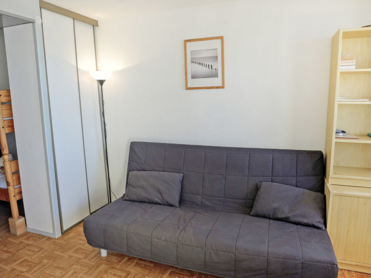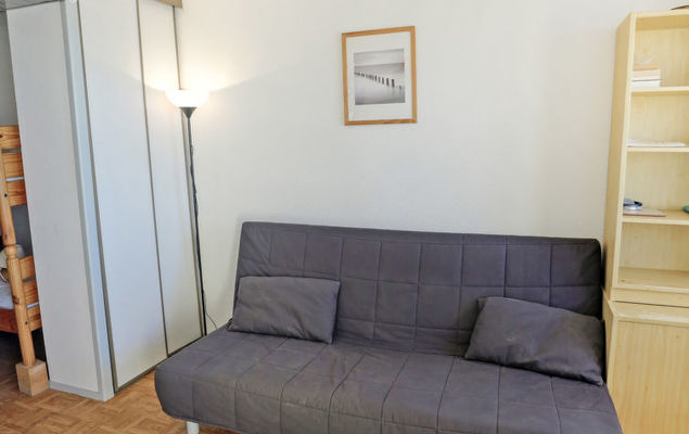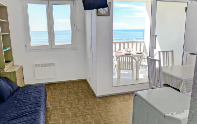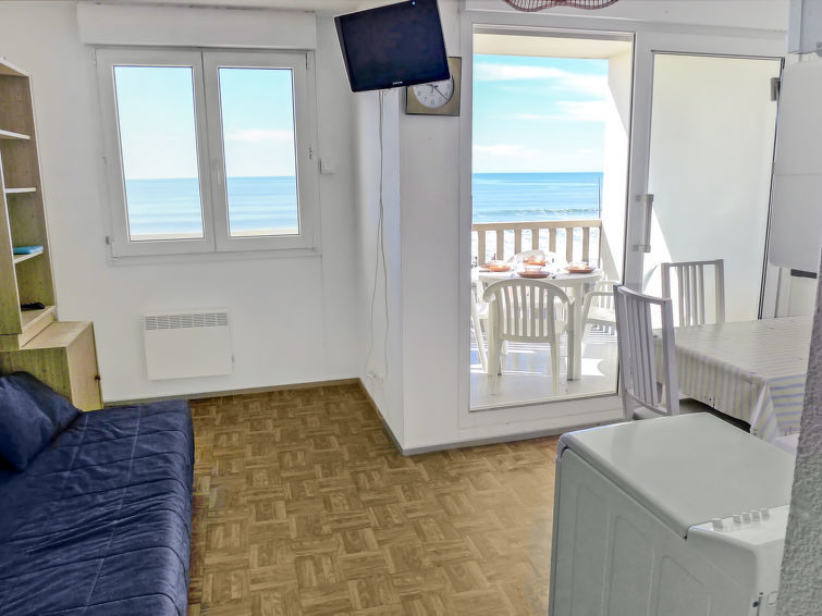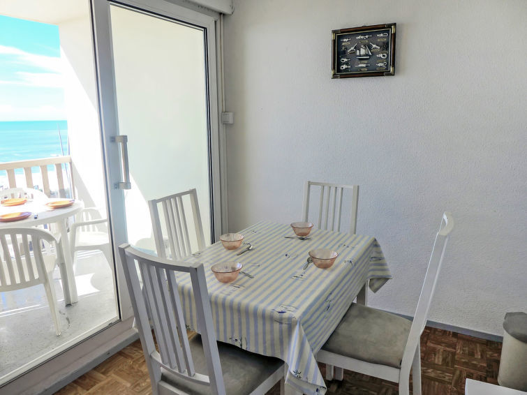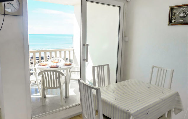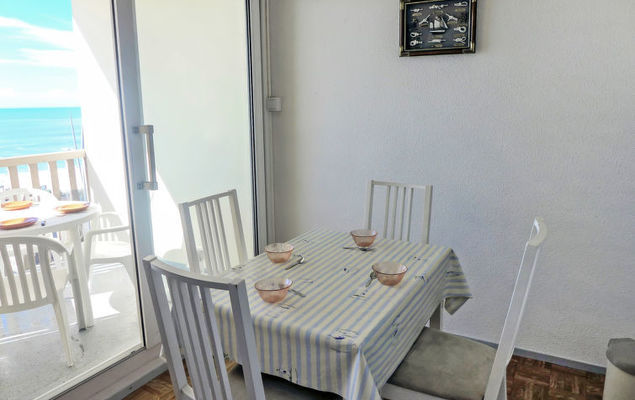 Appartement 2-kamers 31 m2 op de 2e verdieping. Woon-/eetkamer. Hal met 1 x 2 stapelbedden. 1 kamer met 1 2-pers bed. Kookhoek (2-pits kookplaat, mini-oven, afwasmachine, magnetron, elektrische koffiemachine). Douche, aparte WC. Elektrische verwarming. Balkon 5 m2, op het westen gelegen. Balkonmeubilair. Uitzicht op zee. Ter beschikking: wasmachine, strijkijzer. Internet (Internet (WiFi), extra). Let op: maximaal 1 huisdier/hond toegestaan. Rookmelders.
