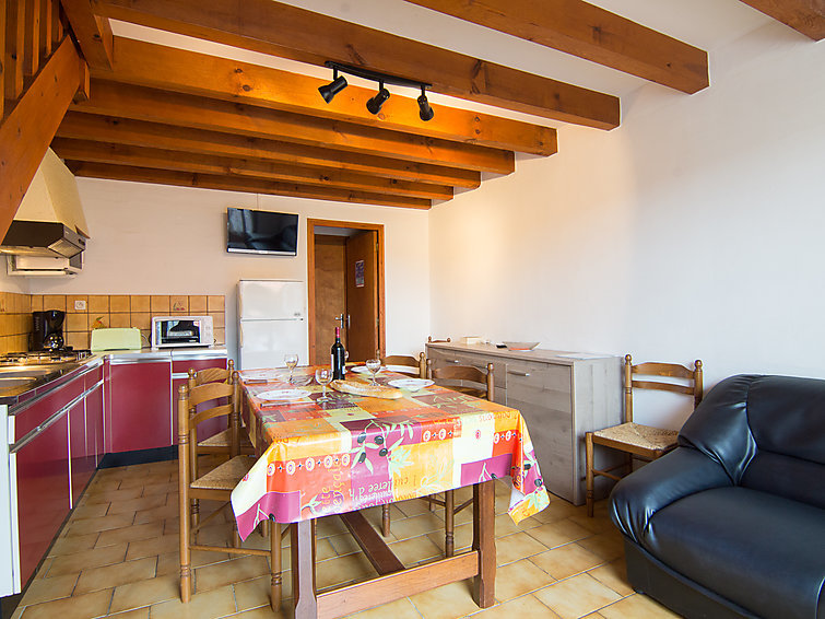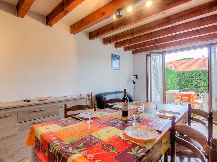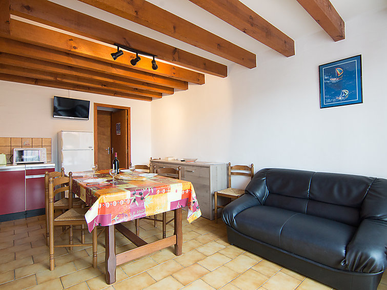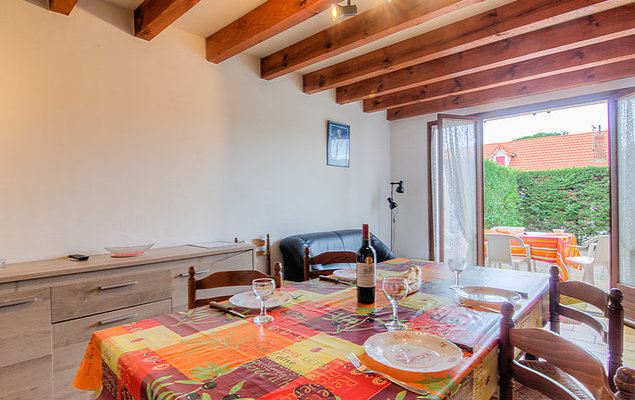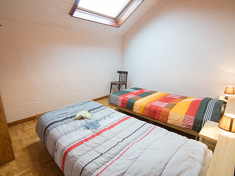 Huis in een rij 3-kamers 50 m2 op 2 verdiepingen. Woon-/eetkamer met TV en internationale TV-zenders (Flatscreen TV). Uitgang naar het terras. Kookhoek (4-pits kookplaat, mini-oven, magnetron). Douche, aparte WC. Bovenverdieping: 1 kamer met afgeschuinde daken met 2 bedden (90 cm, lengte 190 cm). 1 kamer met afgeschuinde daken met 1 bed (90 cm, lengte 190 cm), 1 2-pers bed (1 x 140 cm, lengte 190 cm). Terras. Terrasmeubelen, ligstoelen (1). Ter beschikking: Internet (Internet (WiFi), gratis). Let op: maximaal 1 huisdier/hond toegestaan. Rookmelders.
