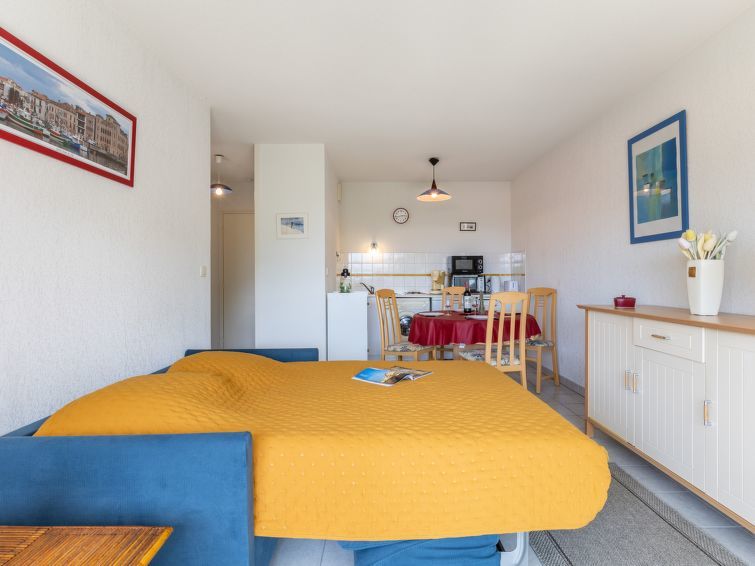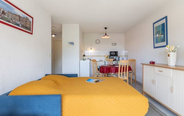 "Le Clos Saint Vincent", appartement 2-kamers 33 m2, op de begane grond. Comfortabel en mooi ingericht: woon-/eetkamer met 1 2-pers divanbed (140 cm, lengte 190 cm), TV (Flatscreen TV), DVD. Uitgang naar het terras. 1 kamer met 1 2-pers bed (140 cm, lengte 190 cm). Kleine, open keuken (2 kookpitten (vlammen), broodrooster, waterkoker, magnetron, elektrische koffiemachine). Badkamer, aparte WC. Elektrische verwarming. Terras 8 m2. Terrasmeubelen. Ter beschikking: wasmachine, strijkijzer, haardroger. Internet (Internet (WiFi), extra). Parkeerplaats bij het huis. Let op: rookmelders. 644830020581A