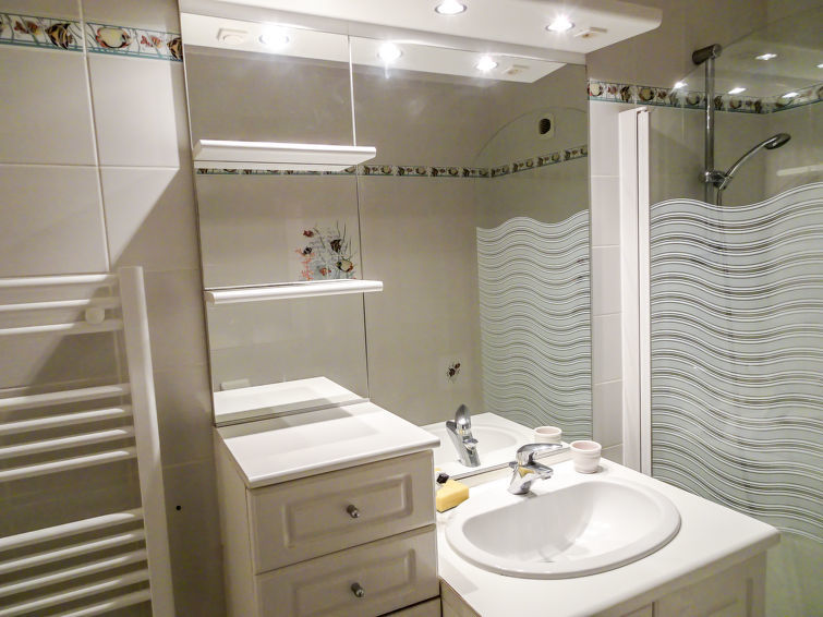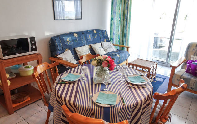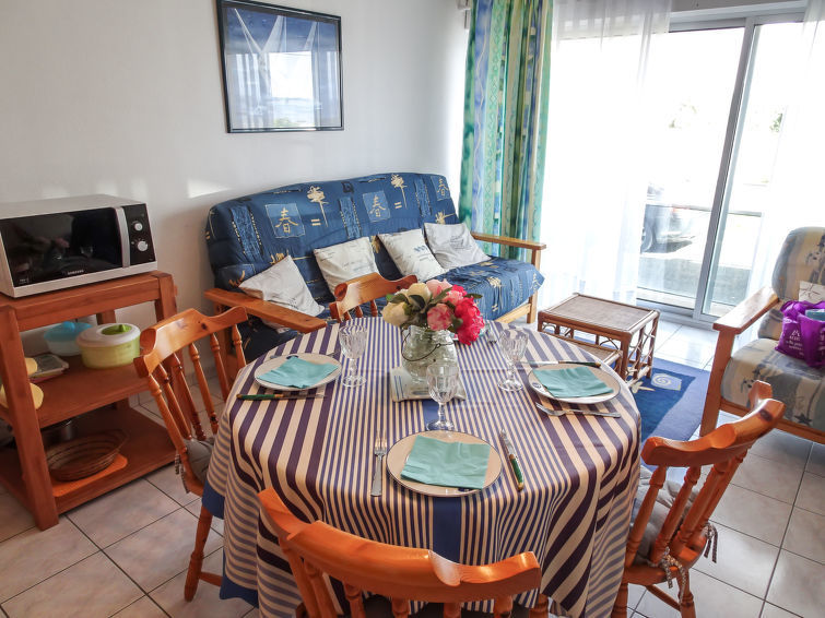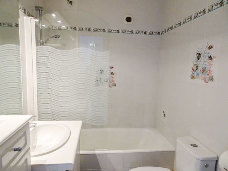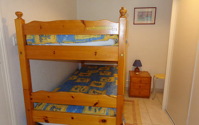 Appartement 2-kamers 50 m2, op de begane grond. Mooi ingericht: woon-/eetkamer met TV (Flatscreen TV). 1 kamer met 1 2-pers bed (1 x 140 cm, lengte 190 cm). Slaapnis 7 m2 met 1 x 2 stapelbedden (80 cm, lengte 190 cm). Kookhoek (2-pits kookplaat, oven, afwasmachine, magnetron, elektrische koffiemachine). Bad/WC. Elektrische verwarming. Zijdelings uitzicht op zee. Ter beschikking: strijkijzer, haardroger.