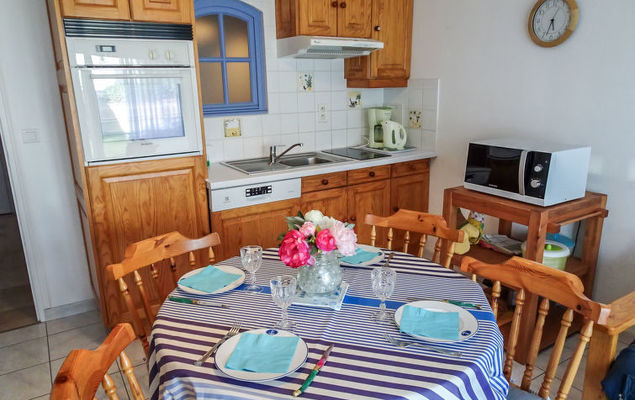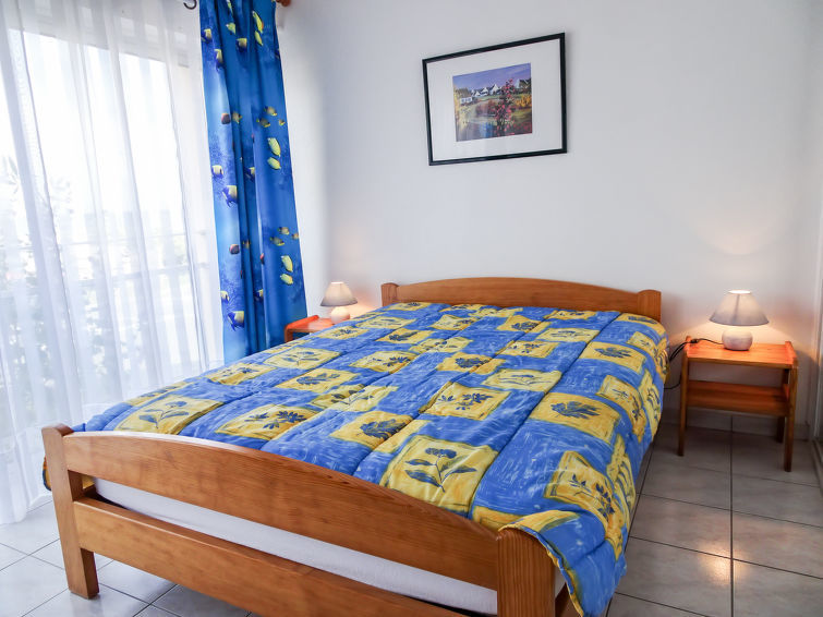 Flatgebouw "Ty Bugale", van 3 verdiepingen. In de plaats, 1 km van het centrum, 50 m van zee, de straat oversteken. Parkeerplaats in de straat. Levensmiddelenwinkel 1 km, restaurant 1 km, zandstrand 50 m.