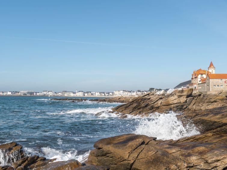 Quiberon: Residentie "Les Gemeaux", van 4 verdiepingen. Aan de rand van de plaats, 1 km van het centrum, 50 m van zee, 300 m van het strand. In het huis: lift, bergruimte voor fietsen. Winkel 1 km, levensmiddelenwinkel 1 km, restaurant 1 km, bar 1 km, station "Auray" 29 km, zandstrand 250 m, overdekt zwembad 150 m, thermaalbad "Thalassothérapie de Quiberon" 600 m, baai 250 m. Jachthaven 1 km, golfterrein (9 holes) 1 km. Attracties in de buurt: Casino de Quiberon 200 m, Thalassothérapie 600 m, Les Alignements de Carnac 18 km, Auray 30 km, Vannes 47 km, Belle-Ile en mer.