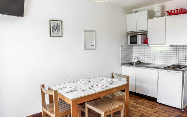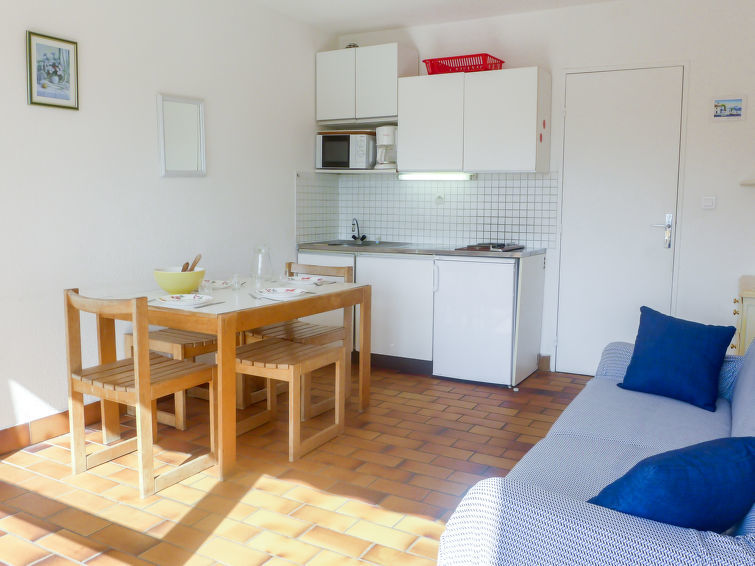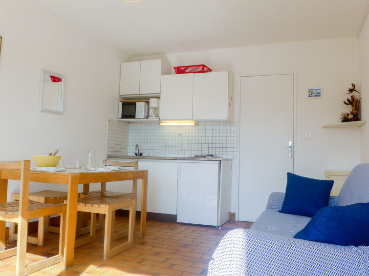 Appartement 1-kamer 21 m2 op de 1e verdieping. Woon-/eetkamer met 1 2-pers divanbed (1 x 140 cm), TV. Hal met 1 x 2 stapelbedden, bad en aparte WC. Kookhoek (2-pits kookplaat, magnetron). Elektrische verwarming, air-conditioning. Balkon, op het zuidwesten gelegen. Terrasmeubelen. Uitzicht op de haven. Ter beschikking: Internet (Internet (WiFi), extra). Parkeerplaats nr. 12extérieur barrière. Let op: rookmelders.