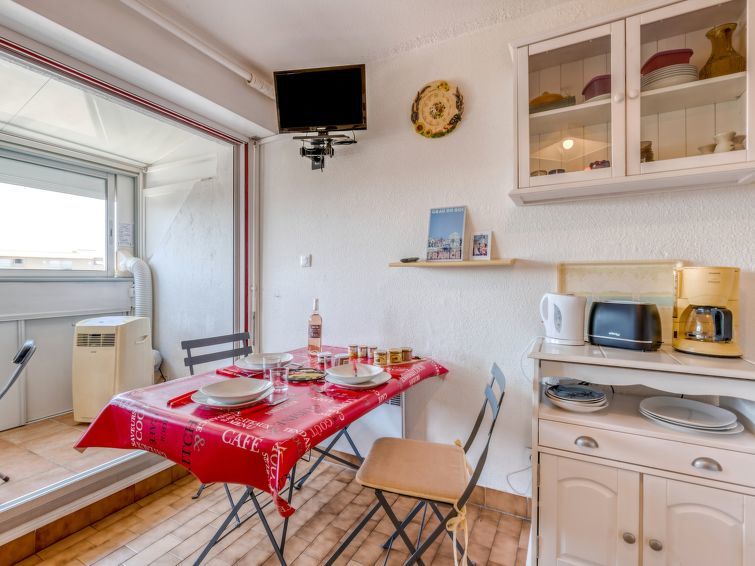 Residentie "Le Marlin", van 3 verdiepingen. In de wijk le Palais de la Mer, 800 m van zee, 800 m van het strand. Voor medegebruik: tennisbaan, jeu de boules, parkeerplaats (beperkt aantal). Winkel 200 m, levensmiddelenwinkel 50 m, supermarkt 150 m, winkelcentrum 350 m, restaurant, bar, café 50 m, zandstrand "Plage Nord", openluchtzwembad 2.2 km, thermaalbad "Thalazur Port Camargue" 4.6 km. Jachthaven 2.3 km, midgetgolf 700 m, manege 2 km, kinderspeelplaats 700 m. Attracties in de buurt: Casino Flamingo 350 m, Seaquarium 1.4 km, Arènes du Grau du roi 3.2 km. Wandelgebied P13. Let op: de sleuteloverdracht vindt plaats bij het agentschap Interhome in Port Camargue, 2 km. Vliegveld 24 km van het huis.