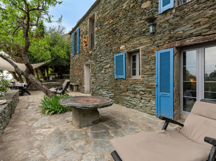 Nonza 19 km van Saint-Florent: Mooi terrasvormig complex "Nonza", van 2 verdiepingen, uit de 18e eeuw. In de plaats, rustige, verhoogde ligging tegen een helling, 2 km van zee, 10 km van het strand, aan een doodlopende weg, te midden van groen, in een voetgangerszone. Voor alleengebruik: terrein 600 m2 (omheind). Steile toegangsweg tot 200 m voor aan het huis (bergweg). Trappenweg (70 treden) naar het huis. Openbare parkeerplaatsen. Levensmiddelenwinkel, restaurant, bakkerij 250 m, bushalte 19 km, zandstrand "Farinole" 10 km. Attracties in de buurt: La Tour Paoline construite en 1760 1 km, L'Eglise classée Santa Ghjulia 1 km, L'éco-musée du Cédrat 1 km, Bastia 33 km, Centuri 37 km. Auto noodzakelijk.