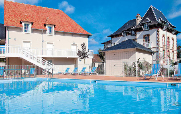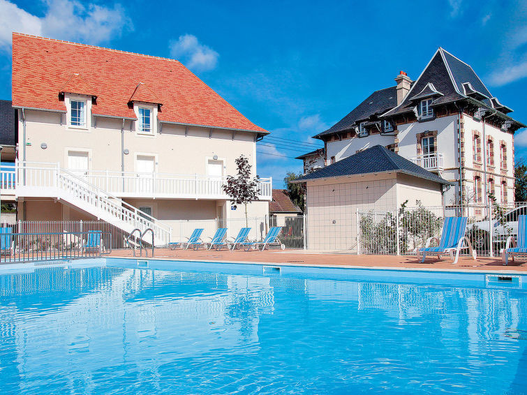 Vakantiecomplex "Domaine des Dunettes", van 3 verdiepingen. 44 appartementen in de woning. 300 m van het centrum van Cabourg, 25 km van het centrum van Caen, in een woonwijk, 500 m van zee. Voor medegebruik: terrein 2.000 m2 met gazon, openluchtzwembad verwarmd (10 x 5 m, seizoensgebonden beschikbaarheid: 30.Mei.-26.Sep.). Terras, kinderspeelplaats. In het complex: receptie, Internet (WiFi), wasmachine, droger (voor medegebruik, extra). Parkeerplaats. Winkel 300 m, restaurant, zandstrand 500 m. Tennis 100 m. Let op: De afgebeelde foto is slechts een voorbeeld. De huurobjecten kunnen wb. Woonoppervlak, kamerindeling verschillen.