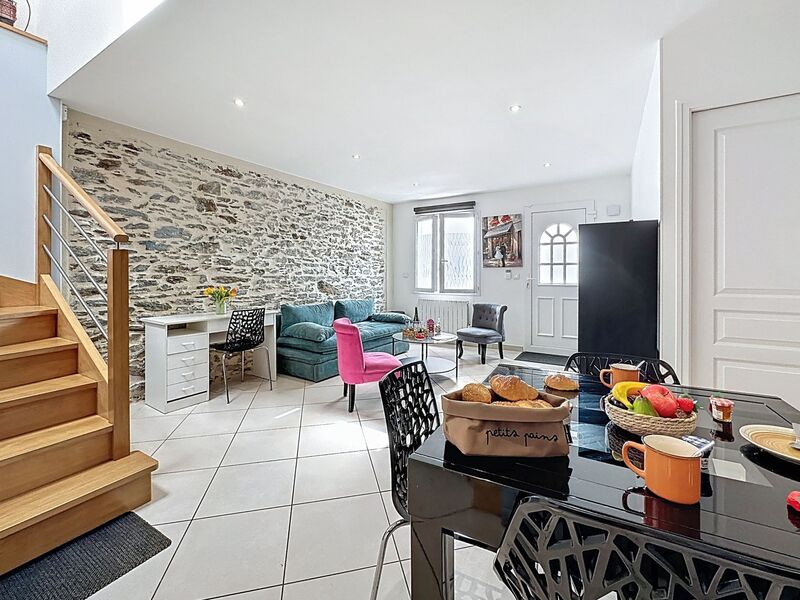 Rijtjeshuis "L'écume", van 2 verdiepingen. In het centrum van Pornic, centrale ligging, in het centrum van de stad, 200 m van zee, 1 km van het strand. Parkeerplaats. Winkel, supermarkt, restaurant, bakkerij, café 200 m, centrum te voet bereikbaar in 2 minuten, bushalte "Gare de Pornic" 200 m, treinstation "Pornic" 200 m, zandstrand "La Source" 1 km, rotsstrand "L'Anse aux Lapins" 850 m (klein), thermaalbad "Alliance Pornic Thalasso & Spa" 1 km. Jachthaven 200 m, jachthaven 1.2 km, golfterrein (18 holes) 3 km, zeilschool 1.7 km, midgetgolf 3 km. Attracties in de buurt: Faïencerie de Pornic 1.2 km, Pornic Aventure Accrobranche 2 km, Biscuiterie Galettes Saint Michel 10 km, Legendia Parc 22 km, Les Machines de l'Ile de Nantes 47 km, Ile de Noirmoutier 58 km. Bekende meren kunnen gemakkelijk worden bereikt: Lac de Saint Viaud 25 km. Wandelgebied Sentier des Douaniers 300 m.