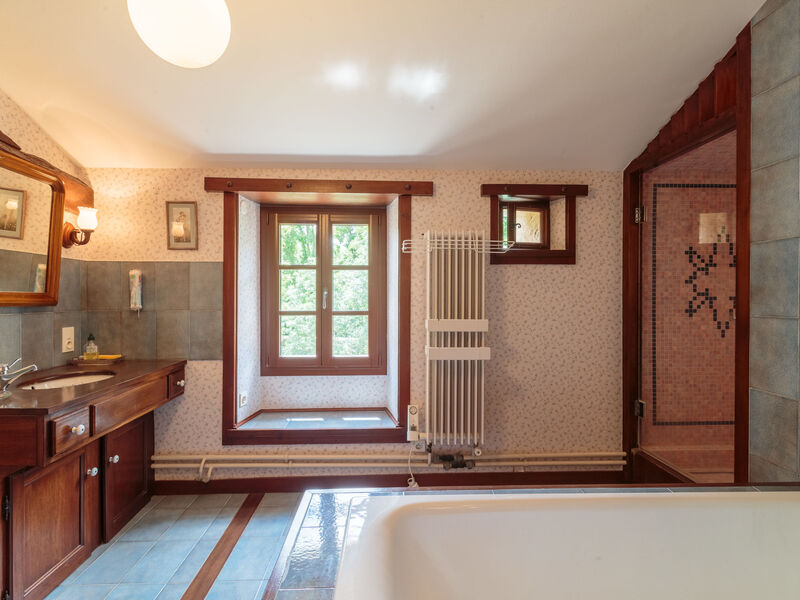 Huis 6-kamers 200 m2. Comfortabel ingericht: woon-/eetkamer met open haard, TV, Flatscreen TV, CD-speler en DVD. Uitgang naar de tuin. 1 groot kamer met 2 bedden (90 cm, lengte 200 cm), douche/WC. Uitgang naar de tuin. Keuken (oven, afwasmachine, 3 inductiekookplaten, broodrooster, waterkoker, magnetron, elektrische koffiemachine) met kleine eettafel. Uitgang naar de tuin. Aparte WC. Bovenverdieping: 1 kamer met afgeschuinde daken met 2 bedden (90 cm, lengte 200 cm). 1 kamer met afgeschuinde daken met 1 bed (110 cm, lengte 185 cm). Bureau. 1 groot kamer met 1 2-pers bed (140 cm, lengte 190 cm). Bad/douche, aparte WC. Heteluchtverwarming. Terras 20 m2, overdekt. Terrasmeubelen, barbecue, ligstoelen (6). Ter beschikking: wasmachine, kinderbed tot 2 jaar. Internet (Internet (WiFi), gratis). Rookvrij huis. Maximaal 1 huisdier/hond toegestaan. Rookmelders.