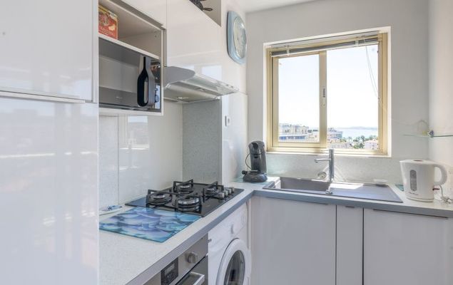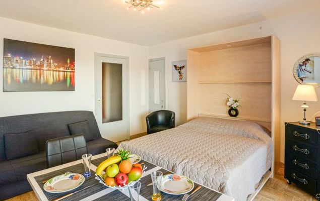 Studio 1-kamer 28 m2 op de 6e verdieping, op het zuidwesten gelegen. Licht, comfortabel ingericht: woon-/eetkamer met 1 2-pers divanbed (140 cm, lengte 190 cm), 1 kastbed (140 cm, lengte 190 cm), TV (Flatscreen TV). Uitgang naar het balkon. Keuken (4-pits kookplaat, oven, afwasmachine, magnetron, diepvriezer, elektrische koffiemachine, pads voor de koffiemachine (SENSEO) extra). Uitgang naar het balkon. Douche/WC. Verwarming. Balkon. Balkonmeubilair. Uitzicht op zee. Ter beschikking: wasmachine, strijkijzer. Internet (Internet (WiFi), extra). Parkeerplaats nr. 37 (1 Auto). Let op: rookmelders. 06027016107MX