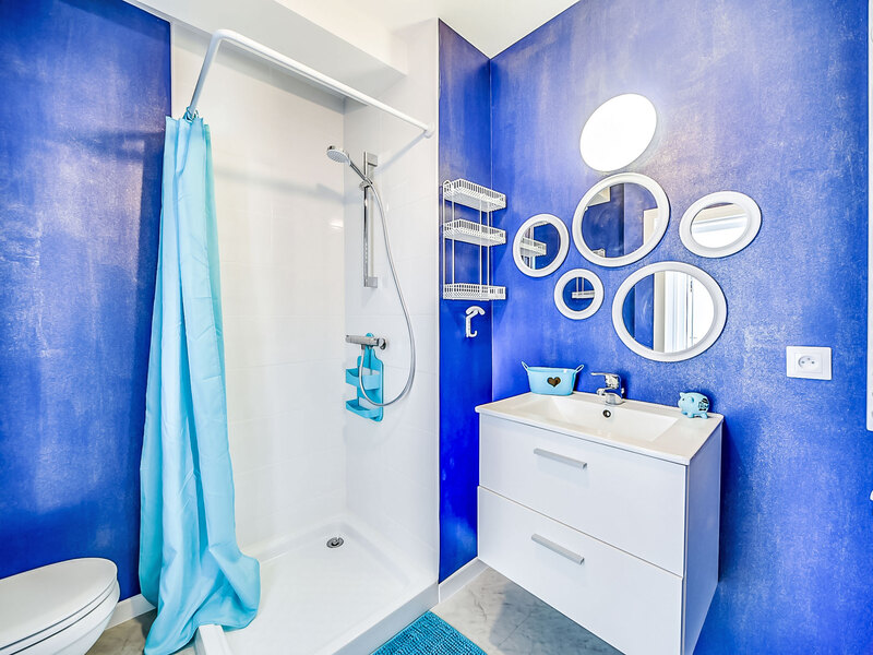 Studio 1-kamer 28 m2 op de 5e verdieping. Comfortabel en mooi ingericht: woon-/eetkamer met 1 2-pers divanbed (140 cm, lengte 190 cm), TV. Uitgang naar het terras. Keuken (2 keramische glas kookplaten, magnetron, elektrische koffiemachine, pads voor de koffiemachine (Nespresso) extra). Uitgang naar het terras. Douche/WC. Elektrische verwarming. Terras 12 m2. Terrasmeubelen. Uitzicht op zee. Ter beschikking: wasmachine. Internet (Internet (WiFi), extra). Rookmelders. 06029004773WF