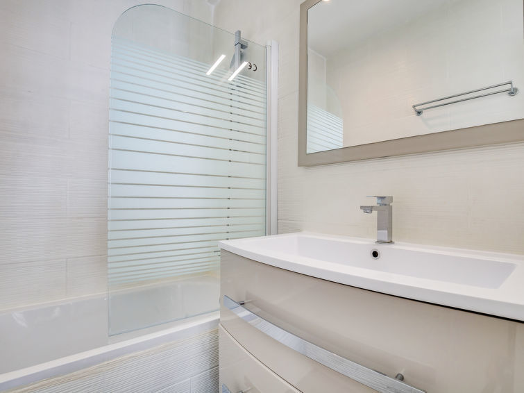 Appartement 2-kamers 40 m2 op de 1e verdieping. Licht, mooi en modern ingericht: woon-/eetkamer met 1 divanbed (140 cm, lengte 190 cm), eettafel en TV (Flatscreen TV), air-conditioning. Uitgang naar het balkon. 1 kamer met 1 2-pers bed (140 cm, lengte 190 cm), TV (Flatscreen TV). Open keuken (oven, afwasmachine, 3 keramische glas kookplaten). Bad/douche, aparte WC. Balkon. Balkonmeubilair. Uitzicht op de plaats. Ter beschikking: wasmachine, strijkijzer, haardroger. Internet (Internet (WiFi), gratis). 06088007864JD
