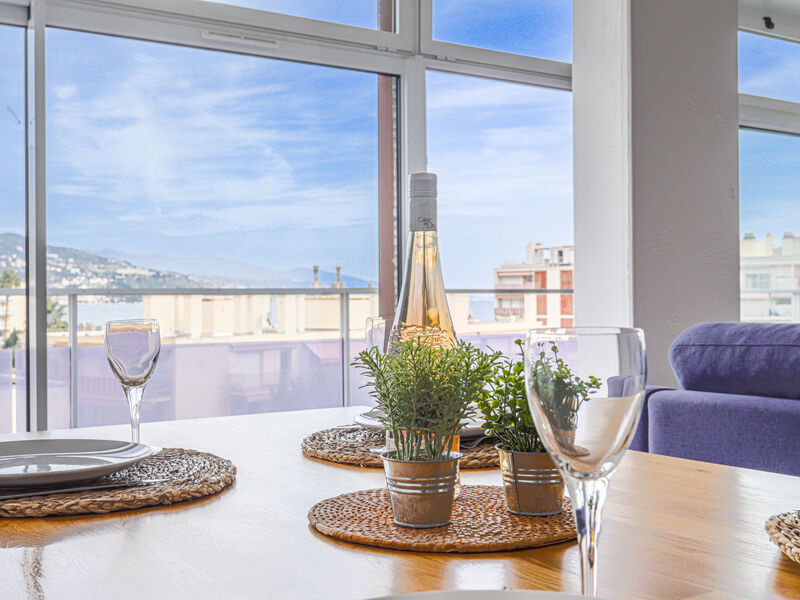 Appartement 2-kamers 60 m2 op de 5e verdieping, op het zuiden gelegen. Ruim en licht in 2024, comfortabel en modern ingericht: groot woon-/slaapkamer met 1 2-pers divanbed (1 x 140 cm, lengte 190 cm), Flatscreen TV en air-conditioning. 1 kamer met 1 2-pers bed (140 cm, lengte 190 cm), air-conditioning. Open keuken (4-pits kookplaat, broodrooster, waterkoker, magnetron, elektrische koffiemachine). Douche/WC. Verwarming. Uitzicht op zee, de bergen en de plaats. Ter beschikking: wasmachine. 1 klein huisdier/hond toegestaan. Rookmelders. Aanbod door een particulier volgens art. 155, IV van CGI. 06104001474OW