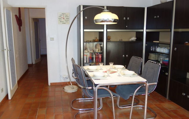 Appartement 2-kamers 46 m2, op de begane grond. Doelmatig ingericht: woon-/eetkamer met panoramavenster met 1 2-pers divanbed (160 cm, lengte 190 cm), TV (Flatscreen TV), DVD. Uitgang naar het terras. 1 kamer met 2 bedden (90 cm, lengte 190 cm). Kleine keuken (oven, afwasmachine, 2 inductiekookplaten, broodrooster, waterkoker, magnetron, elektrische koffiemachine). Badkamer, aparte WC. Elektrische verwarming. Terras 15 m2, zithoek in de tuin 15 m2, op het zuiden gelegen. Terrasmeubelen. Ter beschikking: wasmachine. Internet (Internet (WiFi), gratis). Parkeerplaats nr. 24. Let op: 1 klein huisdier/hond toegestaan. TV alleen FR. Rookmelders.