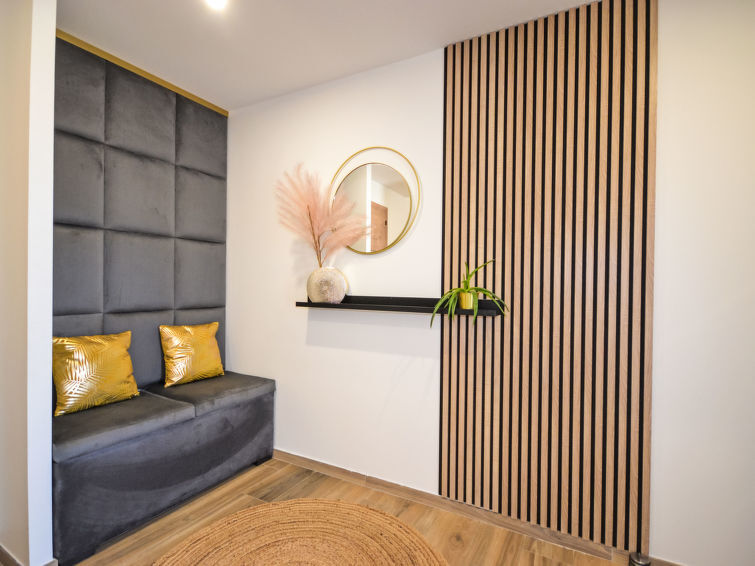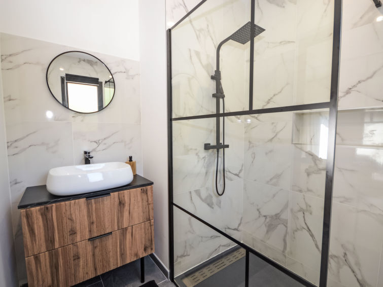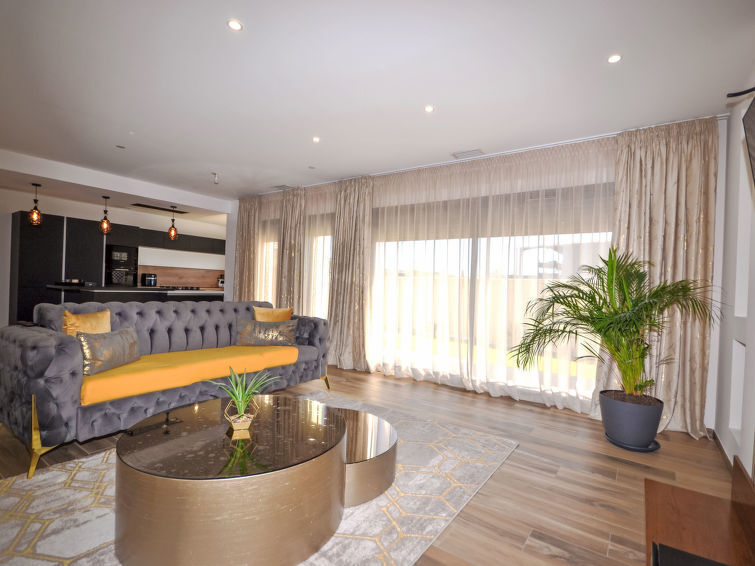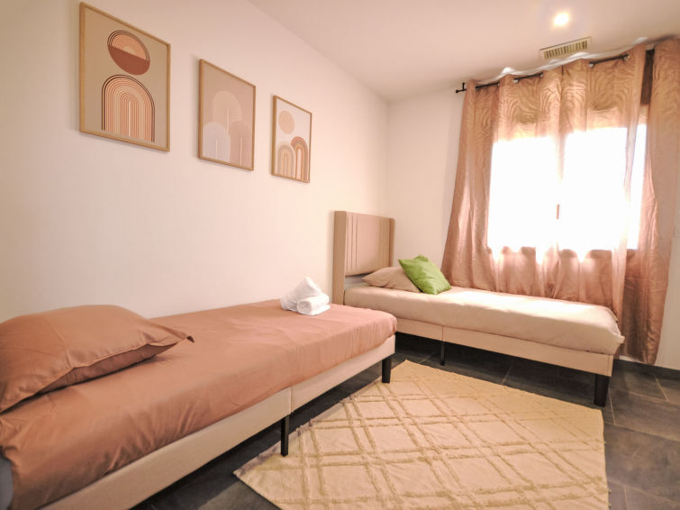 Villa 4-kamers 132 m2 op 2 verdiepingen. Mooi en modern ingericht: woon-/eetkamer 70 m2 met eettafel en TV (Flatscreen TV). Uitgang naar de tuin. Open keuken (oven, 3 inductiekookplaten, broodrooster, waterkoker, magnetron, diepvriezer, elektrische koffiemachine). Aparte WC. Bovenverdieping: 1 kamer met 1 2-pers bed (180 cm, lengte 200 cm), douche. Uitgang naar het balkon. 1 kamer met 2 bedden (90 cm, lengte 190 cm). 1 kamer met 1 2-pers bed (180 cm, lengte 200 cm). Badkamer, aparte WC, dubbele wastafels. Air-conditioning. Terras. Terrasmeubelen, barbecue (verrijdbaar), ligstoelen (2). Ter beschikking: wasmachine, strijkijzer, kinderbed tot 2 jaar. Internet (WiFi, gratis). Geschikt voor families. Rookvrij huis. Rookmelders. Aanbod door een particulier volgens art. 155, IV van CGI.