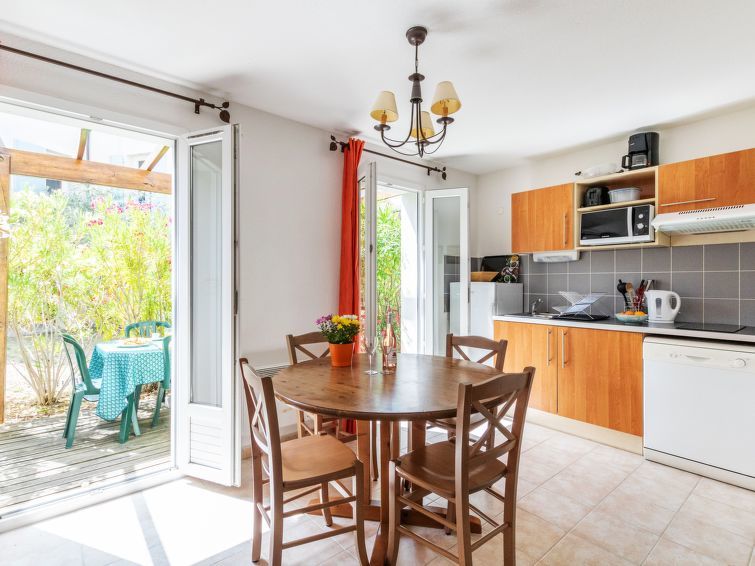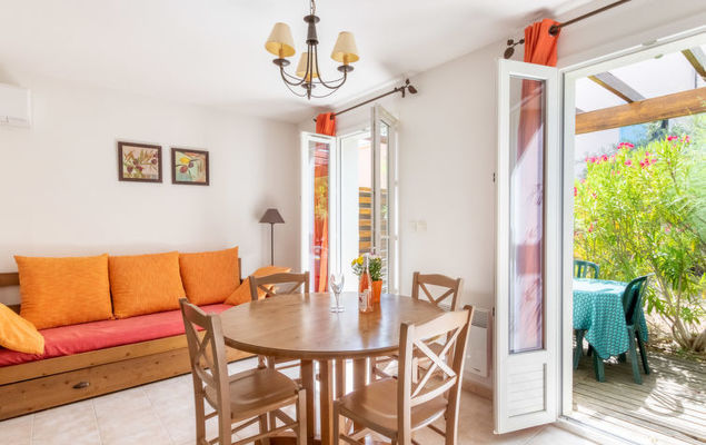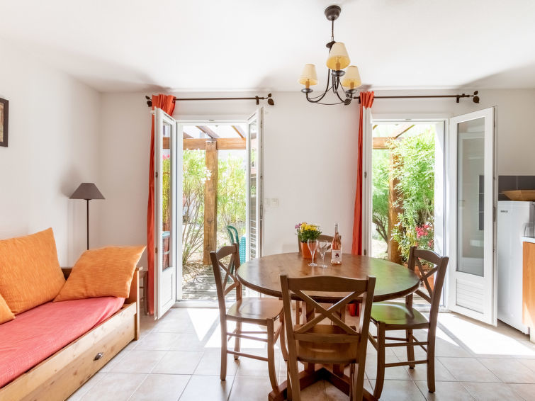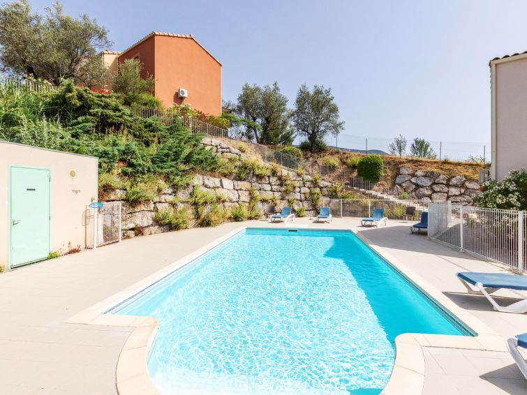 "Le Domaine de l'Oliveraie 37", huis 3-kamers 48 m2 op 2 verdiepingen. Doelmatig en comfortabel ingericht: woon-/eetkamer met 1 divanbed (140 cm), eettafel, TV, elektrische kachel en air-conditioning. Uitgang naar het terras. Kookhoek (afwasmachine, 2 keramische glas kookplaten, broodrooster, waterkoker, magnetron, elektrische koffiemachine). Badkamer. Bovenverdieping: 1 kamer met 2 bedden (90 cm, lengte 190 cm). 1 kamer met 1 2-pers bed (1 x 140 cm, lengte 190 cm). Aparte WC. Klein terras 9 m2. Terrasmeubelen, elektrische barbecue. Op het zwembad. Ter beschikking: strijkijzer, kinderbed, haardroger. Internet (Internet (WiFi), gratis). Parkeerplaats nr. réservé 1 voiture op 110 m. Let op: niet rokers woning. Rookmelders. Aanbod door een particulier volgens art. 155, IV van CGI.