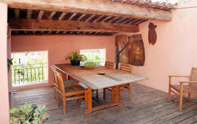 "Les Arcades (NYS120)", huis 3-kamers 220 m2 op 3 verdiepingen. Gerenoveerd, smaakvol ingericht: Bovenverdieping: groot woon-/slaapkamer met 1 divanbed en 1 2-pers bed (160 cm), bad/WC, dubbele wastafels en air-conditioning. 2e Verdieping: open, 1 kamer met 1 bed en 1 2-pers bed (160 cm), bad/WC en air-conditioning. 3e Verdieping: groot woonkeuken (oven, afwasmachine, 1 keramische glas kookplaat, 3 kookpitten (vlammen), broodrooster, waterkoker, magnetron, diepvriezer, elektrische koffiemachine) met eettafel, Sat-TV en DVD. Uitgang naar het terras. Elektrische verwarming. Groot terras gedeeltelijk overdekt. Terrasmeubelen, barbecue (verrijdbaar). Ter beschikking: wasmachine. Internet (Internet (WiFi), gratis). Let op: rookvrij huis. Maximaal 1 huisdier/hond toegestaan.