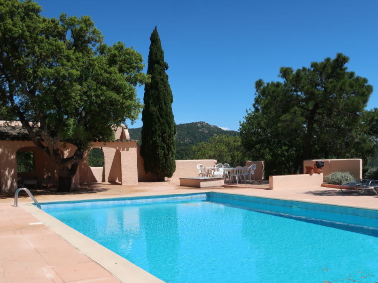 Mooi residentie "Village de Silhouette", omgeven door bomen. Buiten de plaats, 5 km van het centrum van Grimaud, rustige ligging op een heuvel, 6 km van zee. Voor medegebruik: openluchtzwembad omheind (17 x 8 m, 120 - 250 cm diepte, seizoensgebonden beschikbaarheid: 15.Mei.-30.Sep.). Parkeerplaats op 40 m. Winkel 5 km, levensmiddelenwinkel 5 km, supermarkt 6 km, restaurant 5 km, zandstrand "Port Grimaud" 6 km. Golfterrein (18 holes) 8 km, zeilschool 8 km. Attracties in de buurt: Port Grimaud 6 km, Sainte Maxime 12 km, Saint-Tropez 13 km, Plages de Pampelonne 20 km, Nice 110 km, Monaco 130 km. Bekende meren kunnen gemakkelijk worden bereikt: Lac de Sainte Croix 95 km. Wandelgebied Massif de l'Esterel 50 km. Let op: auto noodzakelijk. De sleuteloverdracht vindt plaats bij het agentschap Interhome in Gassin, 7 km. Bij deze accommodatie zijn meer vergelijkbare woningen te huur. De woningen kunnen onderling van inrichting verschillen. De omgeving is gevoelig voor geluidsoverlast. Gelieve geen lawaai te maken en de rust te bewaren.