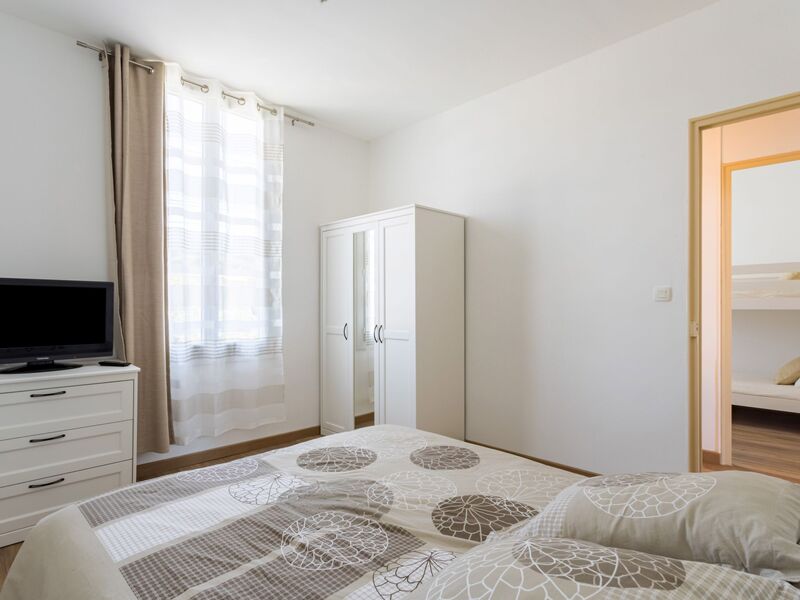 Villa 4-kamers 98 m2 op 2 verdiepingen. Licht, comfortabel en mooi ingericht: woonkamer met TV (Flatscreen TV), air-conditioning. Uitgang naar het terras. Keuken (afwasmachine, 4 inductiekookplaten, broodrooster, waterkoker, magnetron, diepvriezer, elektrische koffiemachine) met eettafel en TV (Flatscreen TV). Aparte WC. Bovenverdieping: 1 kamer met 1 2-pers bed (140 cm, lengte 200 cm). 1 kamer met 1 2-pers bed (160 cm, lengte 200 cm). 1 kamer met 1 x 2 stapelbedden (90 cm, lengte 200 cm). Douche/WC. Air-conditioning, boiler (100 liter). Houten vloeren. Terras 10 m2, terras 9 m2. Terrasmeubelen. Zeer mooi uitzicht op zee. Ter beschikking: wasmachine. Internet (WiFi, extra). TV alleen FR. Rookmelders. Aanbod door een particulier volgens art. 155, IV van CGI.