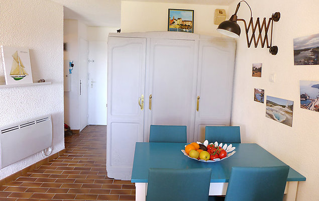 Appartement 2-kamers 40 m2 op de 1e verdieping, op het zuidoosten gelegen. Licht, doelmatig ingericht: eetkamer. Salon met TV (Flatscreen TV). Uitgang naar het terras. 1 kamer met 1 2-pers bed (140 cm, lengte 190 cm). Uitgang naar de loggia. Cabine met 1 x 2 stapelbedden. Kookhoek (mini-oven, afwasmachine, 3 inductiekookplaten, broodrooster, waterkoker, magnetron, elektrische koffiemachine). Badkamer, aparte WC. Elektrische verwarming. Terras 5 m2, overdekt. Terrasmeubelen. Uitzicht op zee. Ter beschikking: wasmachine, strijkijzer, haardroger. Internet (Internet (WiFi), extra). Parkeerplaats nr. 28. Let op: maximaal 1 huisdier/hond toegestaan. Rookmelders. 83048 000189 UO