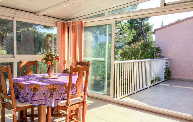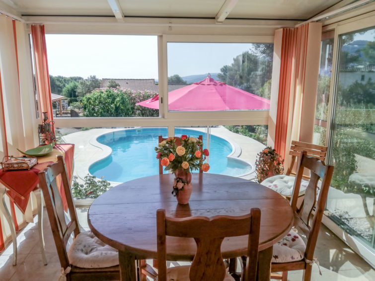 Rijtjeshuis "Les Hauts de Palayson". In de wijk Les Hauts de Palayson, aan de rand van de plaats, 2 km van het centrum van le Muy, rustige ligging, 17 km van zee, 17 km van het strand. Voor alleengebruik: terrein 500 m2, tuin, openluchtzwembad (10 x 5 m, 150 - 170 cm diepte, 15.05.-30.09.) met oprolbaar afdekscherm. Buitendouche, parkeerplaats bij het huis. Winkel 1 km, supermarkt 1.5 km, bakkerij 1.5 km, zandstrand 17 km. Golfterrein (18 holes) 6.5 km. Attracties in de buurt: Navette Bateaux Verts St-Tropez 30min 24 km. Let op: auto noodzakelijk.