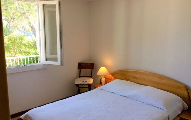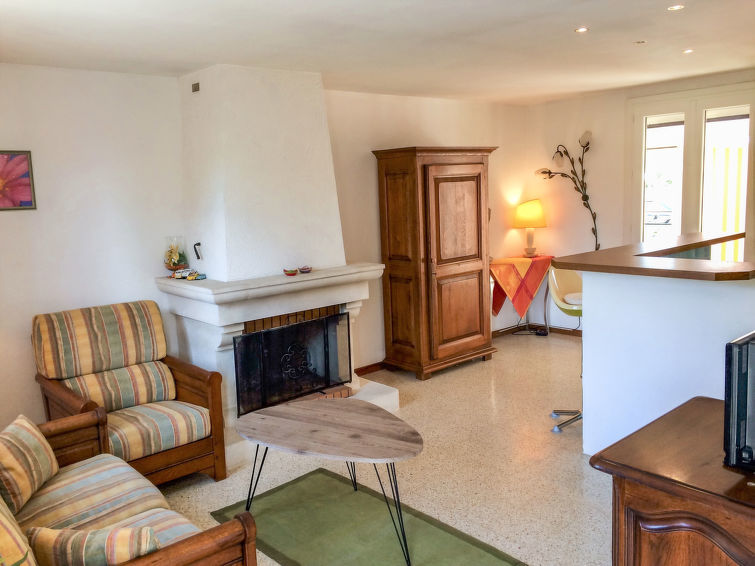 Huis in een rij 3-kamers 100 m2. Woon-/eetkamer. Uitgang naar het terras. 1 kamer met 1 2-pers bed (140 cm, lengte 190 cm). 1 kamer met 1 x 2 stapelbedden (80 cm, lengte 190 cm). Kookhoek (4 inductiekookplaten, broodrooster, waterkoker, diepvriezer, elektrische koffiemachine). Douche/WC. Elektrische verwarming. Terras, op het oosten gelegen. Uitzicht op het landschap. Ter beschikking: wasmachine. Internet (Internet (WiFi), gratis). Let op: rookvrij huis. Rookmelders.