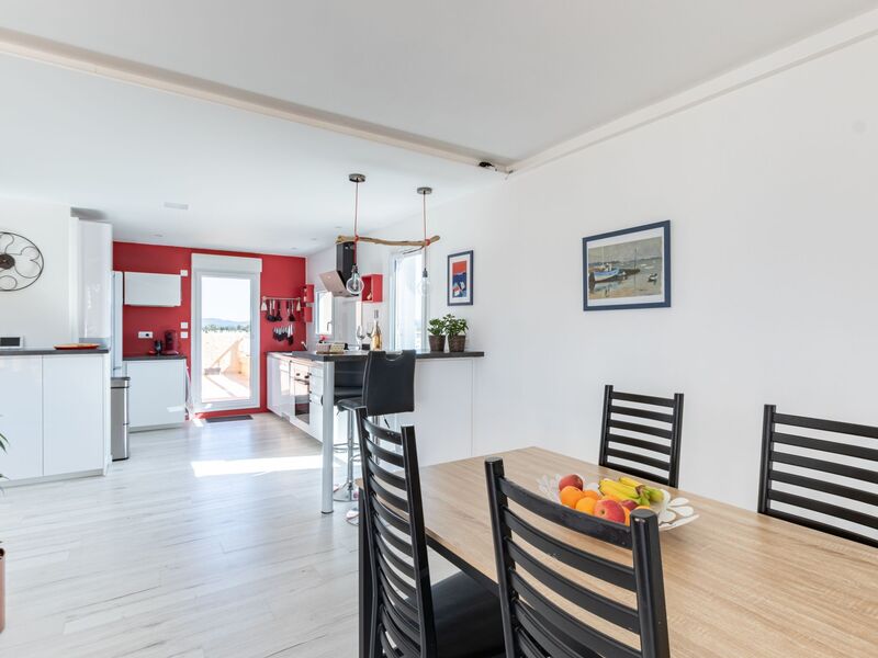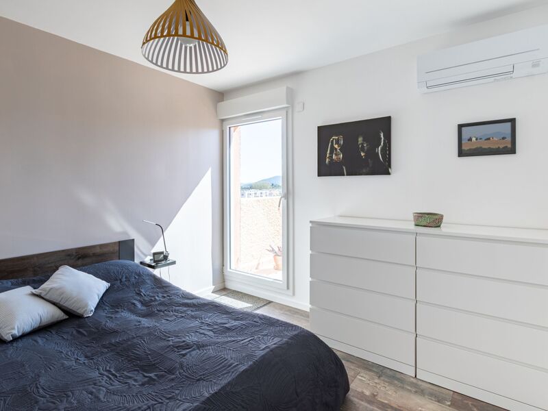 Appartement 3-kamers 80 m2 op de 4e verdieping. Ruim, volledig gerenoveerd in 2020, mooi en modern ingericht: woon-/eetkamer met TV (Flatscreen TV), radio en air-conditioning. Uitgang naar het terras. 1 kamer met 1 2-pers bed (160 cm, lengte 200 cm), air-conditioning. Uitgang naar het terras. 1 kamer met 1 2-pers bed (140 cm, lengte 190 cm). Open keuken (oven, afwasmachine, 3 inductiekookplaten, broodrooster, waterkoker, magnetron, diepvriezer, elektrische koffiemachine, pads voor de koffiemachine (Senseo) extra). Uitgang naar het terras. Douche, aparte WC. Elektrische verwarming. Terras 10 m2, terras 12 m2. Terrasmeubelen. Uitzicht op het landschap en de plaats. Ter beschikking: wasmachine. Internet (Internet (WiFi), gratis). TV alleen FR. Rookmelders. Aanbod door een particulier volgens art. 155, IV van CGI.