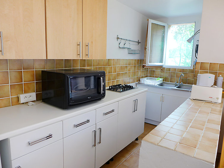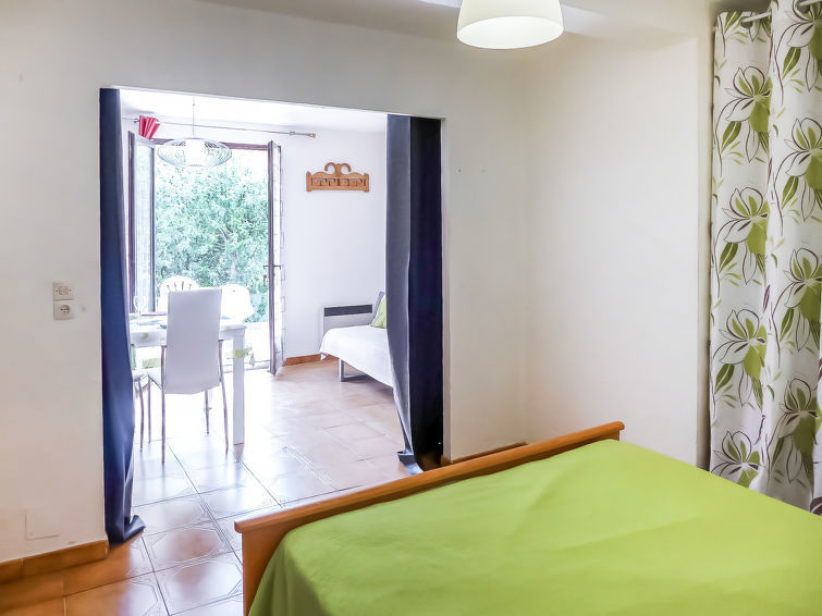 Appartement 1-kamer 35 m2, op de begane grond, op het zuiden gelegen. Mooi ingericht: woon-/eetkamer met TV. Uitgang naar het terras. 1 open kamer met gordijn, zonder ramen met 1 2-pers bed (1 x 140 cm, lengte 190 cm), ventilator. Open keuken (2 kookpitten (vlammen), broodrooster, diepvriezer, elektrische koffiemachine, combimagnetron). Douche, aparte WC. Elektrische verwarming. Terras 16 m2, zithoek in de tuin. Terrasmeubelen. Ter beschikking: strijkijzer, haardroger. Internet (WiFi, extra). Parkeerplaats. Maximaal 1 huisdier/hond toegestaan. TV alleen FR. Rookmelders. 83107000281MZ