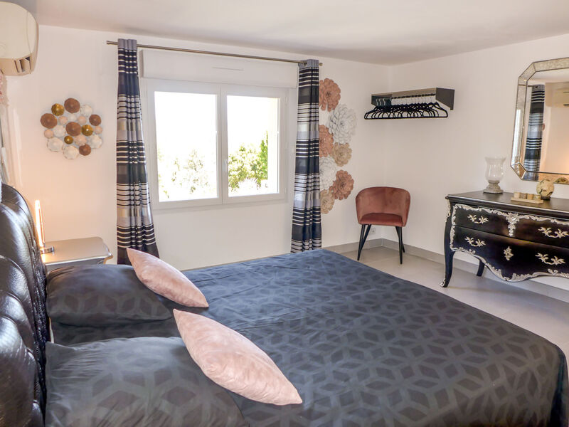Huis 7-kamers 300 m2 op 2 verdiepingen. Comfortabel en modern ingericht: hal met douche/WC. Salon met TV (Flatscreen TV), air-conditioning. Uitgang naar het terras. Groot woon-/eetkamer met panoramavenster met air-conditioning. Uitgang naar het terras, naar het zwembad. Open keuken (oven, afwasmachine, 4 inductiekookplaten, magnetron, diepvriezer, elektrische koffiemachine). Uitgang naar het zwembad. Souterrain: 1 groot kamer met Kleedkamer met 1 2-pers bed (1 x 180 cm, lengte 200 cm), bad, aparte WC, bad/douche, dubbele wastafels, hot tub en air-conditioning. Uitgang naar de tuin. 1 kamer met 1 2-pers bed (1 x 160 cm, lengte 200 cm), TV (Flatscreen TV). 1 kamer met 1 2-pers bed (1 x 140 cm, lengte 200 cm), wastafel. Uitgang naar het terras, naar het zwembad. Douche/WC. Verwarming. Terras 100 m2, op het zuidwesten gelegen terras 70 m2, op het oosten gelegen, tuin. Terrasmeubelen, barbecue, ligstoelen (6). Zeer mooi panoramazicht op het landschap en het bos. Ter beschikking: wasmachine, droger, strijkijzer, haardroger. Internet (WiFi, gratis). Parkeerplaats (omheind, 4 Auto's). Niet geschikt voor kleine kinderen. Maximaal 1 huisdier/hond toegestaan. Rookmelders. Bijgebouw (toegang via buitentrap): 1 slaapkamer met 1 tweepersoonsbed (180x200), airconditioning. 1 kamer met 2 bedden (2x 90x200), airconditioning. Bad / aparte WC. 8310700023358