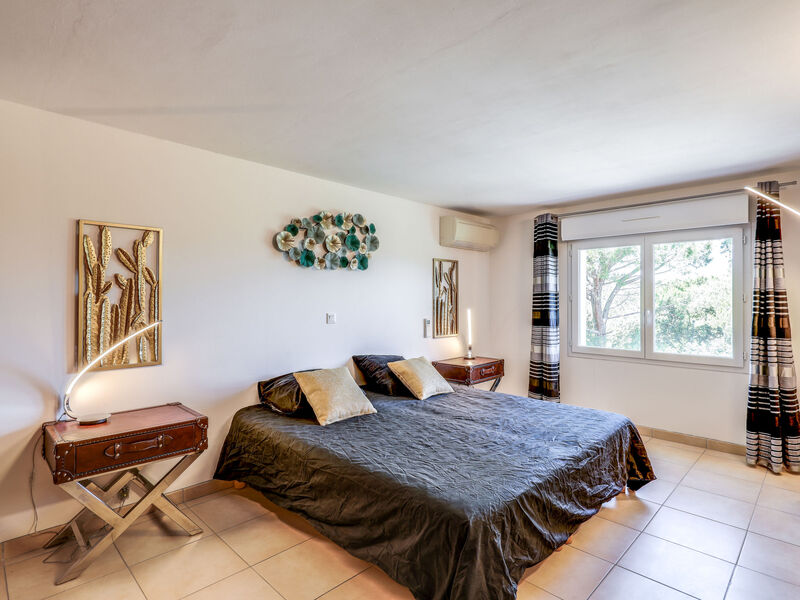 Moderne eengezinswoning "Les Toscanes", van 2 verdiepingen, omgeven door bomen. Huurobject bestaande uit hoofd-/ bijgebouw, buiten de plaats Roquebrune sur Argens, rustige, zonnige, verhoogde ligging op een heuvel, in een woonwijk, gebied met weinig verkeer, te midden van groen. Voor alleengebruik: wilde tuin 1 ha (omheind), openluchtzwembad hoekig, verwarmd, geen inkijk (12 x 6 m, 60 - 170 cm diepte, seizoensgebonden beschikbaarheid: 15.Mei. - 15.Okt.) met oprolbaar afdekscherm en alarminstallatie. Buitendouche, poolhouse, terras (170 m2), barbecue. In het huis: alarmsysteem. 1 maal per week schoonmaak op verzoek (extra). Winkel 3 km, bushalte "Roquebrune Village" 2 km, treinstation "Fréjus" 20 km, zandstrand "Plage de Saint Aygulf" 15 km kiezelstrand "Calanque des Louvans" 14 km, park "Areca" 14 km, thermaalbad "Thalasso de Port Fréjus" 20 km, meer Lac de l'Arèna 3 km. Jachthaven 15 km, golfterrein (18 holes) 10 km, zeilschool 15 km, manege 7 km, sportcentrum 4 km, wandelroutes 100 m vanaf het huis. Attracties in de buurt: Base Nature du Rocher 4 km, Roquebrune sur Argens 3 km, Saint Aygulf 15 km, Aqualand, Luna park 20 km, Sainte Maxime 24 km, Saint Tropez 40 km. Bekende skigebieden kunnen gemakkelijk worden bereikt: Auron, Isola 2000 155 km. Bekende meren kunnen gemakkelijk worden bereikt: Lac de St Cassien 50 km, Lac du Du Verdon 95 km. Wandelgebied Col de Valdingarde 5 km, Estérel 25 km. Auto noodzakelijk. Niet geschikt voor kleine kinderen. De eigenaar accepteert geen jeugdgroepen. Gesloten residentie met een elektrische deur.