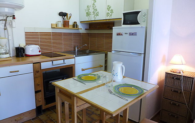 Studio 1-kamer 28 m2, op de begane grond. Doelmatig ingericht: woonkamer met panoramavenster met 1 2-pers divanbed (140 cm, lengte 190 cm), TV en ventilator. Uitgang naar het terras. Kookhoek (oven, 2 keramische glas kookplaten, broodrooster, waterkoker, magnetron, diepvriezer, elektrische koffiemachine). Douche/WC. Terras 16 m2, op het zuidoosten gelegen. Terrasmeubelen, ligstoelen (2). Uitzicht op zee. Ter beschikking: strijkijzer. Internet (Internet (WiFi), extra). Parkeerplaats nr. B14. Let op: TV alleen FR. Rookmelders.