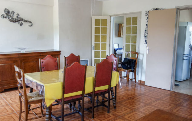 Appartement 3-kamers 75 m2 op de 1e verdieping. Eenvoudig en doelmatig ingericht: woon-/eetkamer met 1 divanbed (120 cm, lengte 190 cm), TV. Uitgang naar het balkon. 1 kamer met 1 2-pers bed (140 cm, lengte 190 cm). Uitgang naar het balkon. 1 kamer met 1 2-pers bed (140 cm, lengte 190 cm). Keuken (4-pits kookplaat, oven, broodrooster, waterkoker, magnetron, diepvriezer, elektrische koffiemachine). Badkamer, aparte WC. Klein balkon 4 m2, op het zuidoosten gelegen, tuin 160 m2, op het noordwesten gelegen. Terrasmeubelen, barbecue. Ter beschikking: wasmachine, strijkijzer. Internet (Internet (WiFi), extra). Parkeerplaats bij het huis. Let op: 1 klein huisdier/hond toegestaan. TV alleen FR. Rookmelders. 83112 000404 KN