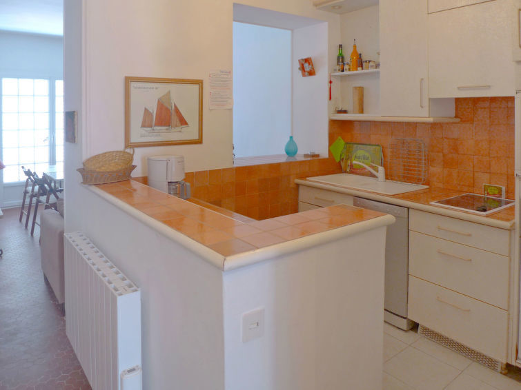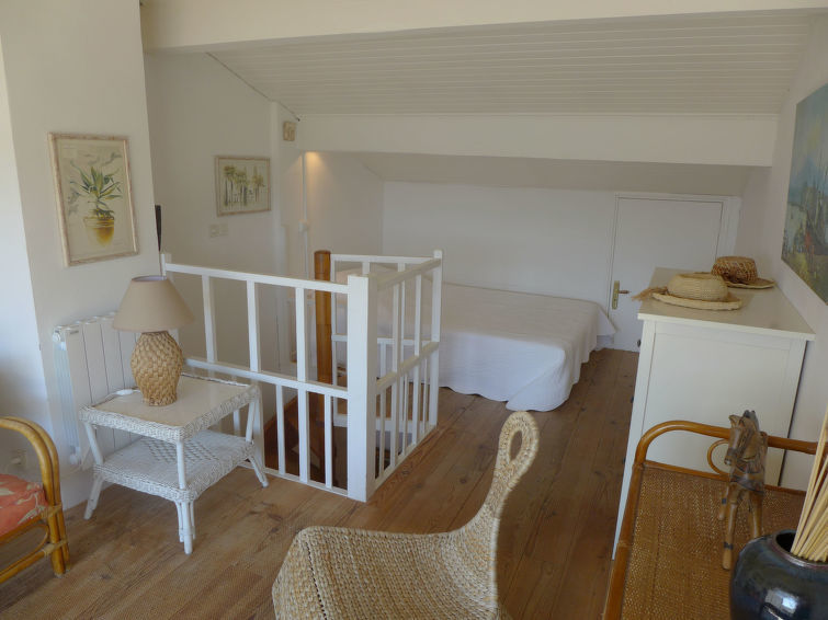 Appartement 3-kamers 50 m2 op 2 verdiepingen op de 1e verdieping. Licht, doelmatig en mooi ingericht: woon-/eetkamer met TV en stereo-installatie. Uitgang naar het balkon, op het zuiden. 1 kamer met 2 bedden (90 cm, lengte 190 cm). Open keuken in de hal (oven, afwasmachine, 2 keramische glas kookplaten, elektrische koffiemachine). Douche/WC. Bovenverdieping: (wenteltrap) woon-/slaapkamer met afgeschuinde daken, hoogte van het plafond 127 - 220 cm met 1 2-pers bed (1 x 140 cm, lengte 190 cm). Uitgang naar het terras. Elektrische verwarming. Balkon 8 m2, op het zuiden gelegen, terras 12 m2, op het zuiden gelegen. Terrasmeubelen. Panoramazicht op zee en de haven. Ter beschikking: wasmachine, strijkijzer. Internet (Internet (WiFi), extra). Garage op 600 m. Let op: maximaal 1 klein huisdier/hond toegestaan. TV alleen FR. Rookmelders. De wenteltrap heeft geen leuning. De garage is in de kelder van de woning gelegen op 600m. Afmetingen van de garage: hoogte 1,80 m/ breedte 2,23 m/ diepte 5,10 m. 831120002139Z
