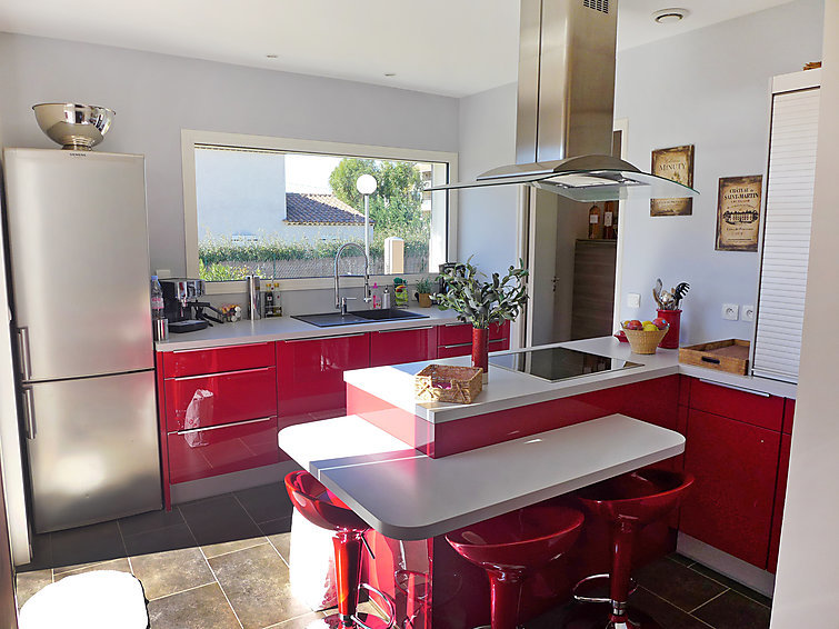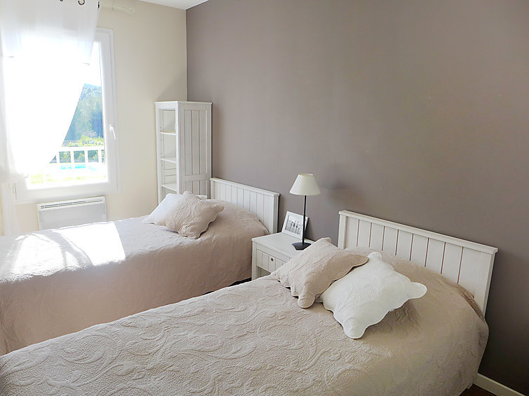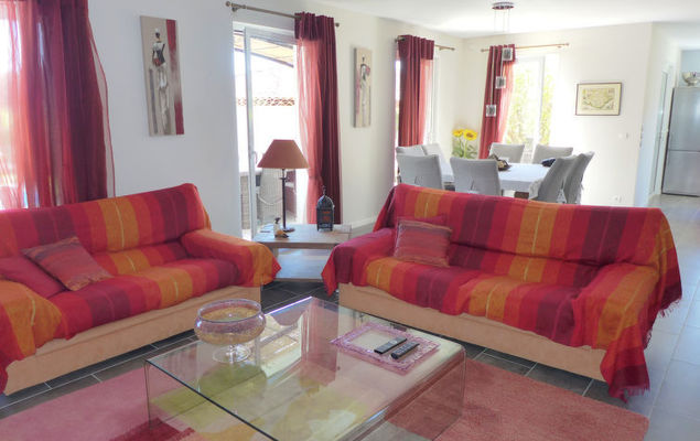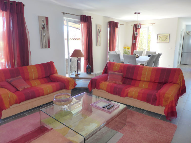 Huis 5-kamers 130 m2 op 2 verdiepingen. Comfortabel en mooi ingericht: groot woon-/eetkamer met Sat-TV (Flatscreen TV), stereo-installatie en DVD. Uitgang naar het terras, naar het zwembad. 1 kamer met 1 2-pers bed (160 cm, lengte 200 cm), TV (Flatscreen TV). Uitgang naar het terras. Open keuken (oven, afwasmachine, 3 inductiekookplaten, magnetron, diepvriezer, elektrische koffiemachine). Uitgang naar het terras. Douche, aparte WC. Elektrische verwarming. Bovenverdieping: 1 kamer met 1 2-pers bed (140 cm, lengte 190 cm). 1 kamer met 1 2-pers bed (140 cm, lengte 200 cm). 1 kamer met 2 bedden (90 cm, lengte 200 cm). Badkamer, aparte WC, dubbele wastafels. Groot terras 80 m2, op het zuidoosten gelegen, groot tuin, op het zuiden gelegen, gazon. Terrasmeubelen, barbecue. Ter beschikking: wasmachine, strijkijzer, kinderbed tot 2 jaar. Internet (Internet (WiFi), gratis). Parkeerplaats. Let op: rookmelders. 83112 000284 VX