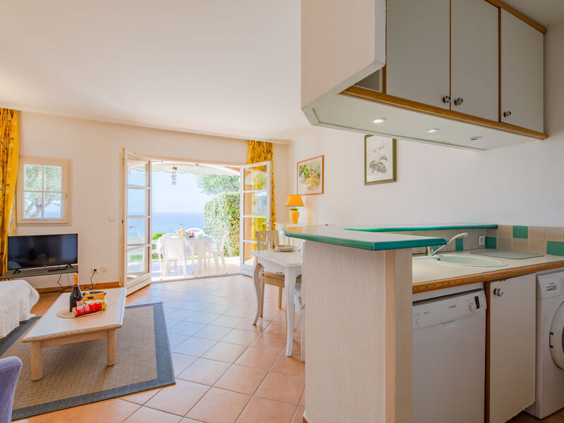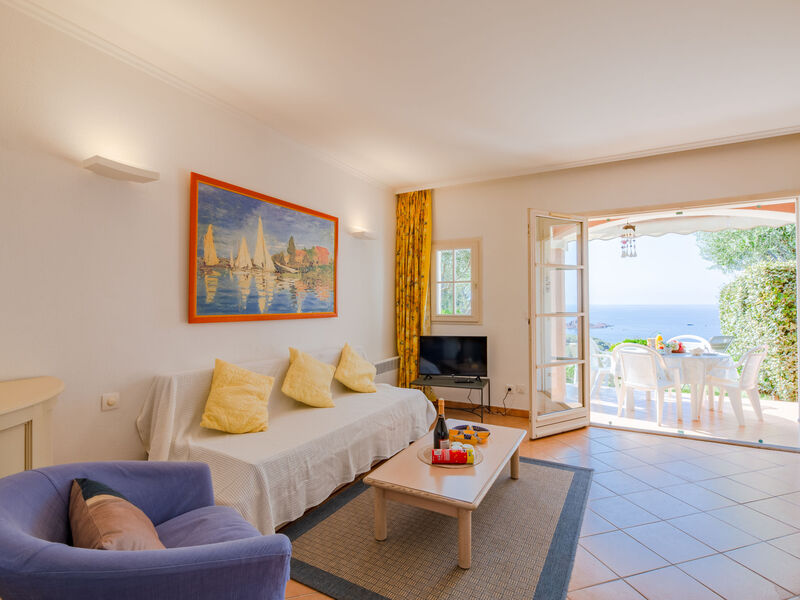 Groot vakantiecomplex "Village Cap Estérel - Le Hameau". Aan de rand van de plaats, 2 km van het centrum van Agay, tegen een helling, in een woonwijk, 900 m van zee, 900 m van het strand, de straat oversteken, aan de golfbaan, in een voetgangerszone. Voor medegebruik: park 210 ha, 5 zwembaden (seizoensgebonden beschikbaarheid: 06.Apr. - 03.Nov.). Kinderzwembad, tennisbaan (extra), basketbal, jeu de boules, kinderspeelplaats (glijbaan, schommel). In het complex: spa centrum (extra), winkel, wasserette (extra). Winkel, levensmiddelenwinkel 500 m, supermarkt 6 km, restaurant, bakkerij 500 m, bushalte "Ligne 21" 300 m, treinstation "Saint-Raphaël-Valescure TGV" 9 km, zandstrand "Tiki Plage" 900 m. Jachthaven 1 km, golfterrein (9 holes), tennis 500 m. Attracties in de buurt: Anthéor 8 km, Saint-Raphaël 9 km, Fréjus 13 km, Cannes 33 km, Saint-Tropez 50 km, Nice 76 km. Bekende meren kunnen gemakkelijk worden bereikt: Lac Saint-Cassien. Wandelgebied Massif de l'Estérel. Autovrij vakantiepark, geen lift. Animatie in het hoogseizoen. Geschikt voor families, kinderopvang mogelijk in het hoogseizoen (extra). Bewaakt vakantiecomplex. Vergelijkbare accommodaties kunnen worden geboekt.