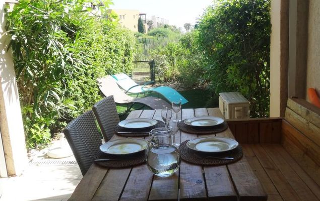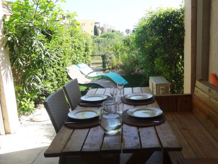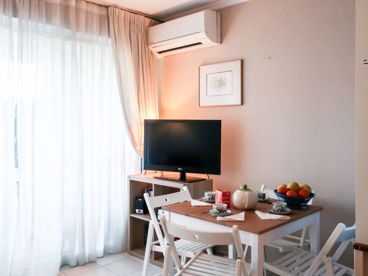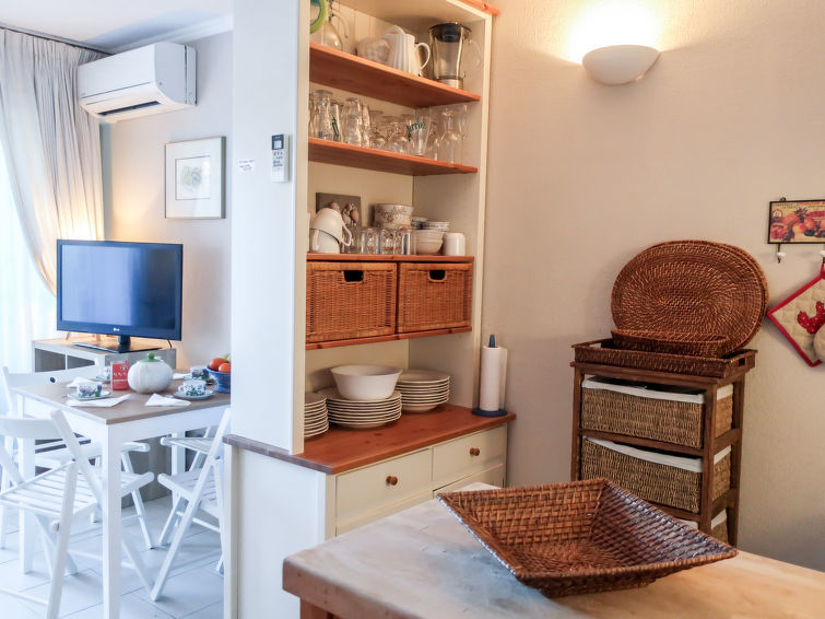 Appartement 2-kamers 35 m2, op de begane grond. Eenvoudig en comfortabel ingericht: woon-/eetkamer met 1 divanbed (140 cm, lengte 190 cm), TV (Flatscreen TV), air-conditioning. Uitgang naar de tuin, naar het terras. 1 kamer met 2 bedden (90 cm, lengte 190 cm). Kookhoek (4-pits kookplaat, oven, afwasmachine). Douche/WC. Terras 15 m2, tuin 9 m2. Terrasmeubelen, ligstoelen (2). Ter beschikking: wasmachine. Internet (Internet (WiFi), extra). Parkeerplaats nr. 161. Let op: rookmelders. 83065000152SO