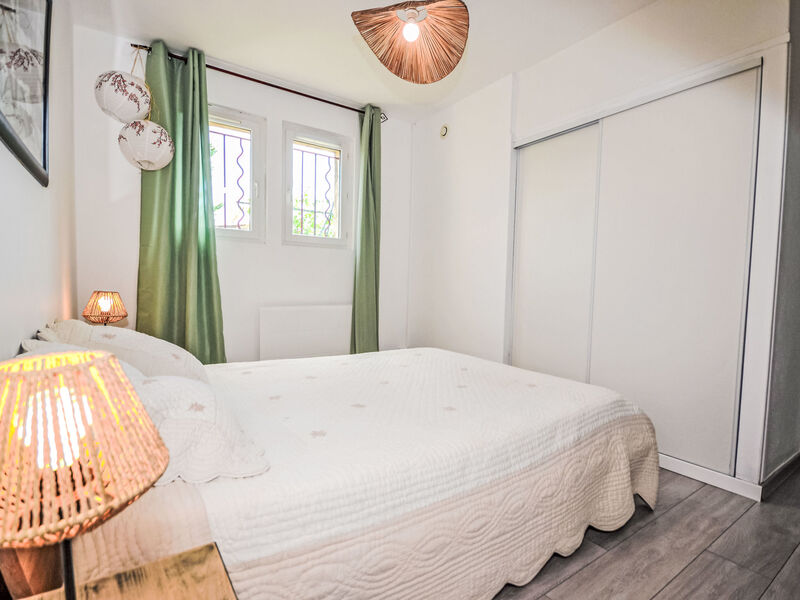 "Les Santons", appartement 3-kamers op de begane grond, op het westen gelegen. Licht, gerenoveerd in 2025, mooi en smaakvol ingericht: woon-/eetkamer met TV, internationale TV-zenders en air-conditioning. Uitgang naar het terras. 1 kamer met 1 2-pers bed (160 cm, lengte 200 cm). 1 kamer met 1 uitschuifbaar bed (2 pers. 2 x 90 cm, lengte 190 cm), air-conditioning. Uitgang naar de zitplaats in de tuin. Open keuken (4-pits kookplaat, oven, afwasmachine, magnetron, diepvriezer, elektrische koffiemachine) met air-conditioning. Aparte WC, bad of douche. Elektrische verwarming. Natuurstenen vloeren. Terras 35 m2. Ter beschikking: wasmachine, kinderstoel, kinderbed. Internet (WiFi, gratis). Parkeerplaats (omheind, 2 Auto's). Rookmelders. Aanbod door een particulier volgens art. 155, IV van CGI.