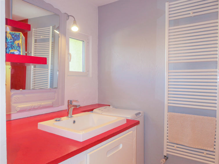Huis in een rij 3-kamers 65 m2 op 2 verdiepingen. Rustiek ingericht: woon-/eetkamer met TV en Flatscreen TV. Kookhoek (4-pits kookplaat, afwasmachine, magnetron, elektrische koffiemachine). Bovenverdieping: 1 kamer met 1 2-pers bed (140 cm, lengte 190 cm). 1 kamer met 1 bed (90 cm, lengte 190 cm), 1 2-pers bed (1 x 140 cm, lengte 190 cm). Douche, aparte WC. Verwarming, air-conditioning. Terras 15 m2. Terrasmeubelen, barbecue, ligstoelen (4). Uitzicht. Ter beschikking: wasmachine, strijkijzer, kinderstoel, kinderbed, haardroger. Internet (Internet (WiFi), gratis). Let op: rookmelders.