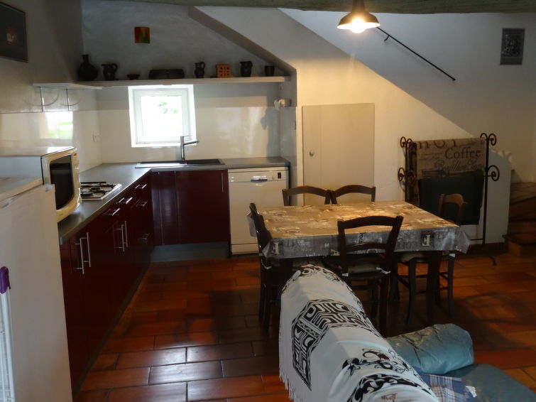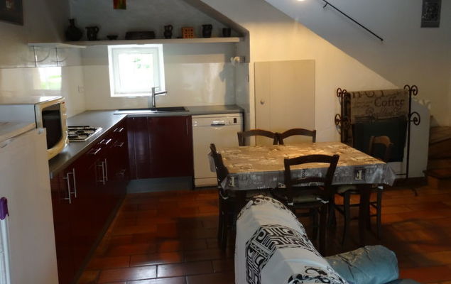 Dorpshuis, aangrenzend aan dat van de eigenaar. Rijtjeshuis "La Croix du Puits", aangebouwd. Voor medegebruik: terrein 200 m2 (omheind) met gazon en planten, mooie tuin ter ontspanning. Kinderspeelplaats. Voor alleengebruik: openluchtzwembad (7 x 4 m, 90 - 155 cm diepte, 01.05.-15.10.). Terras, tuinmeubelen. In het huis: centrale verwarming. Parkeerplaats op het terrein. Winkel 5 km, levensmiddelenwinkel 300 m, bakkerij 50 m. Tennis 1 km, wandelroutes 200 m vanaf het huis, fietspad 1 km. Eigenaar woont in apart huisgedeelte. Kleine vijver met goudvissen in de tuin.