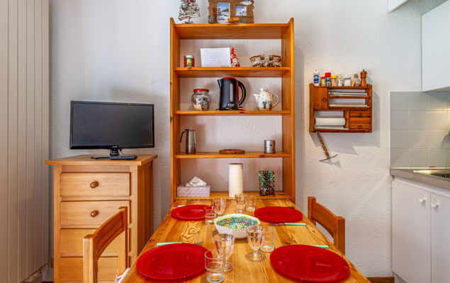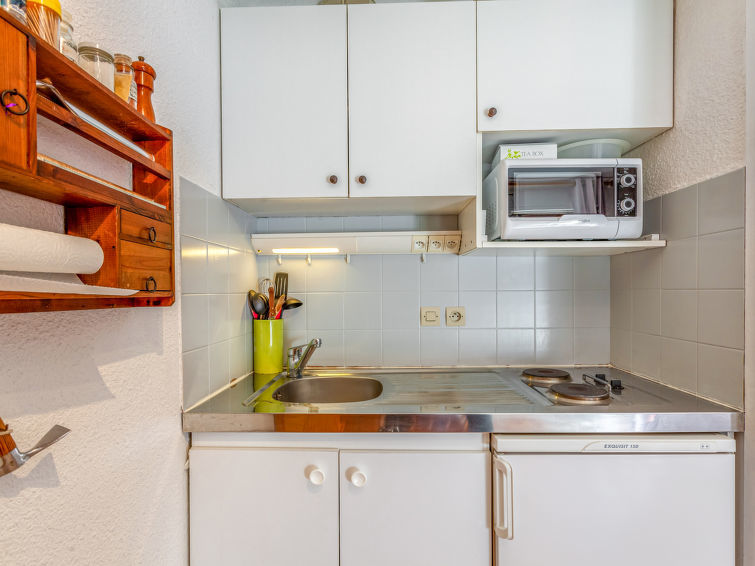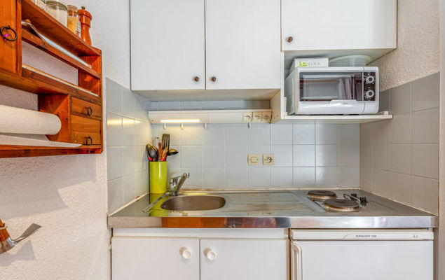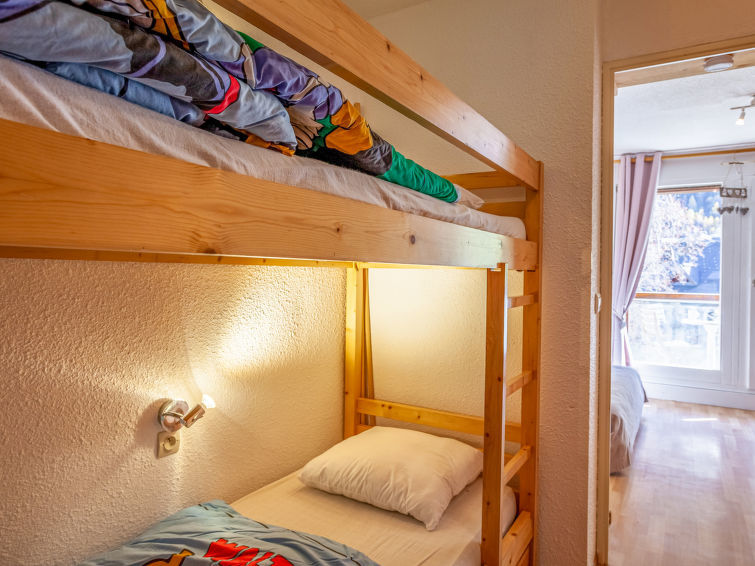 Studio 1-kamer 20 m2 op de 2e verdieping. Woon-/eetkamer met 1 2-pers divanbed (140 cm, lengte 190 cm), TV. Uitgang naar het balkon. Hal met 1 x 2 stapelbedden (80 cm, lengte 190 cm). Open keuken (2-pits kookplaat, broodrooster, waterkoker, elektrische koffiemachine, raclette oven, combimagnetron, fondue Set (kaas)). Badkamer, aparte WC. Elektrische verwarming. Klein balkon 3 m2, op het zuidoosten gelegen. Balkonmeubilair. Uitzicht op de bergen. Ter beschikking: Internet (Internet (WiFi), extra). Parkeerplaats. Let op: 1 klein huisdier/hond toegestaan. TV alleen FR. Rookmelders, geen lift.