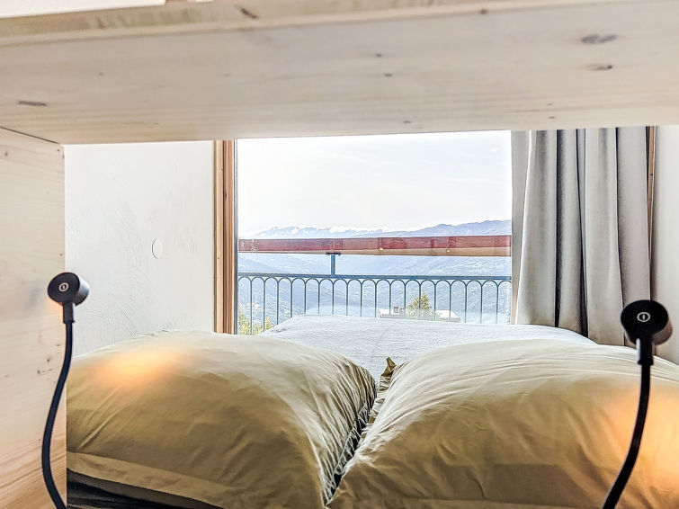 Appartement 2-kamers 38 m2 op de 3e verdieping. Gerenoveerd, comfortabel en smaakvol ingericht: woon-/eetkamer met TV (Flatscreen TV). Uitgang naar het balkon, op het zuidwesten. Doorloopkamer met 1 x 2 stapelbedden (80 cm, lengte 190 cm). 1 kamer met 1 2-pers bed (160 cm, lengte 200 cm). Open keuken (oven, afwasmachine, 4 inductiekookplaten, broodrooster, waterkoker, magnetron, elektrische koffiemachine, pads voor de koffiemachine (Nespresso) extra) met eettafel. Badkamer, aparte WC. Zeer mooi panoramazicht op de bergen en de skipiste. Ter beschikking: wasmachine, strijkijzer, haardroger. Internet (WiFi, gratis). Hoogte 180 cm. Niet rokers woning. Rookmelders. Aanbod door een particulier volgens art. 155, IV van CGI.