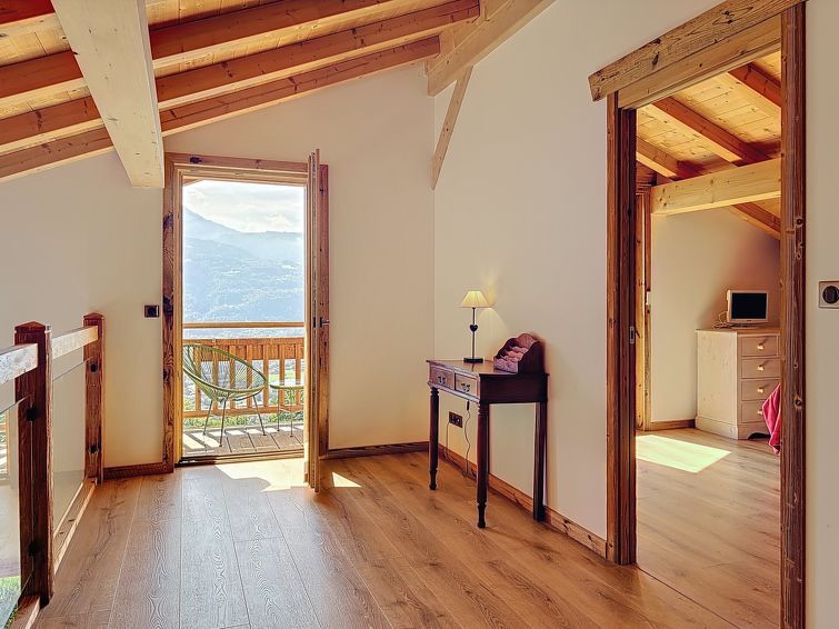 Chalet 5-kamers 180 m2 op 2 verdiepingen. Luxueus en smaakvol ingericht: woon-/eetkamer met open haard, TV, homecinema en elektrische rolluiken. Uitgang naar het terras, op het zuidwesten. 1 kamer met 1 2-pers bed (160 cm, lengte 200 cm), douche. Uitgang naar de tuin. Groot, open keuken (afwasmachine, 4 inductiekookplaten, broodrooster, waterkoker, elektrische koffiemachine, pads voor de koffiemachine (Nespresso) extra, raclette oven, kookeiland, combimagnetron, fondue Set (kaas)) met eettafel. Aparte WC. Vloerverwarming, boiler. Souterrain: groot hal. Bovenverdieping: galerij. 1 kamer met 1 2-pers bed (160 cm, lengte 200 cm). 1 kamer met 1 2-pers bed (160 cm, lengte 200 cm). Bad/douche, aparte WC. Groot terras 10 m2, op het zuidwesten gelegen. Terrasmeubelen, barbecue. Zeer mooi panoramazicht op de bergen en het dal. Ter beschikking: wasmachine, droger, kluis, strijkijzer, kinderstoel, kinderbed, haardroger. Internet (WiFi, gratis). Garage (2 Auto's). Niet rokers woning. Rookmelders, geen lift. Aanbod door een particulier volgens art. 155, IV van CGI.