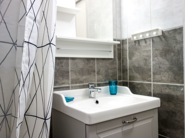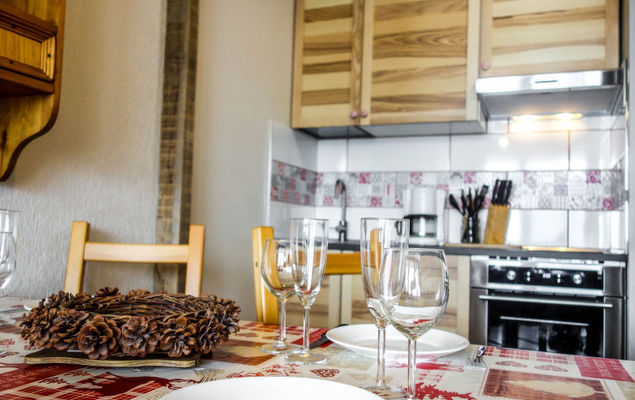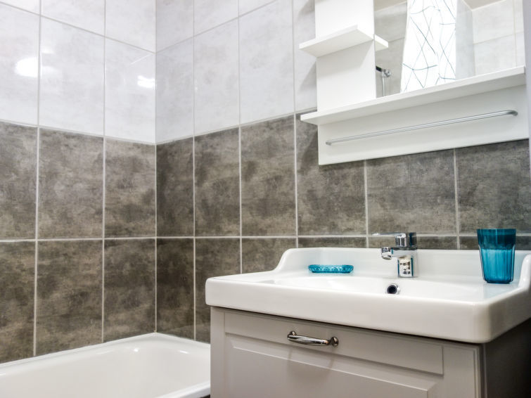 Appartement 1-kamer 28 m2 op de 5e verdieping. Woon-/eetkamer met 1 2-pers divanbed (140 cm), TV. Hal met 1 x 2 stapelbedden (70 cm). Kookhoek (4-pits kookplaat, oven, magnetron). Bad/WC. Balkon, op het zuidwesten gelegen. Mooi uitzicht. Ter beschikking: Internet (Internet (WiFi), extra). Let op: rookmelders.