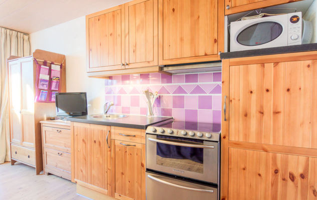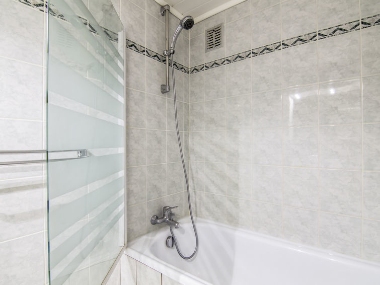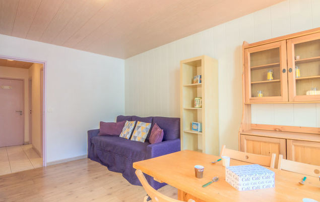 Studio 1-kamer 25 m2 op de 2e verdieping. Doelmatig ingericht: woon-/eetkamer met 1 uitschuifbaar bed (2 pers. 2 x 80 cm, lengte 190 cm), TV (Flatscreen TV). Hal met 2 opklapbedden (80 cm, lengte 190 cm). Woonkeuken (oven, afwasmachine, 4 keramische glas kookplaten, magnetron). Badkamer, aparte WC. Klein balkon, op het zuiden gelegen. Uitzicht op de bergen. Ter beschikking: Internet (Internet (WiFi), extra). Let op: niet rokers woning. Rookmelders.
