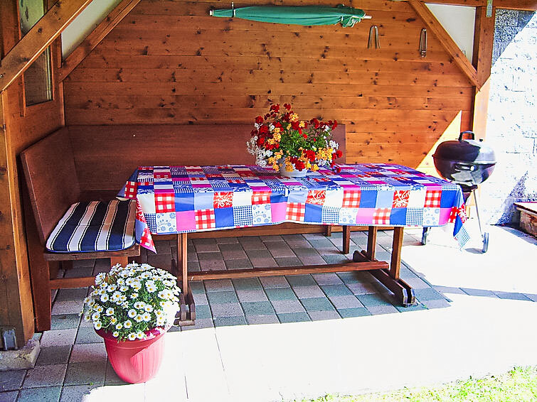 Appartement 4-kamers 106 m2, op de begane grond. Gezellig ingericht: groot hal. 1 2-pers. kamer. 1 kamer met 1 divanbed en 1 2-pers bed. 1 kamer met 1 bed en 1 2-pers bed. Woonkeuken (4-pits kookplaat, oven, afwasmachine, diepvriezer) met eettafel, Sat-TV. Bad/douche, 2 aparte WC's. Mooi uitzicht op de bergen. Ter beschikking: wasmachine, kinderbed. Internet (Internet (WiFi), gratis). Rookmelders.